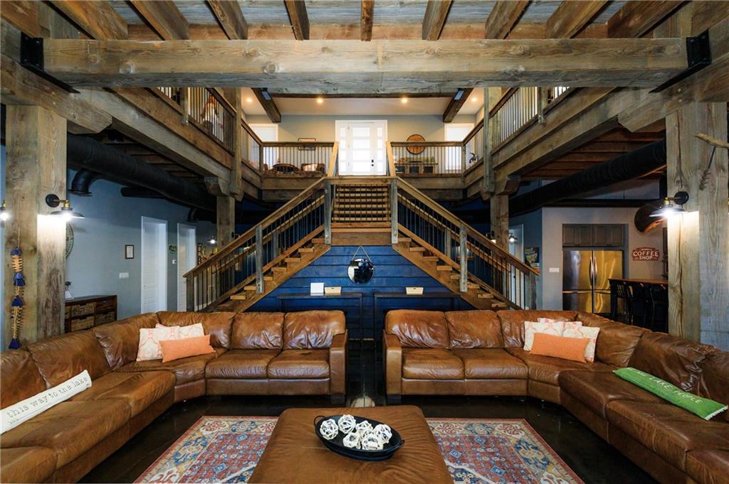 Show-stopping waterfront retreat on 8mm w/spectacular lake views! Impressive work of craftsmanship features reclaimed wood + shipyard beams, custom lighting, & heated floors. This stately, open-concept creates a tranquil feel of rustic sophistication - completely furnished. Striking architectural impact, designed for resort-style living or high-end short term rental earning $2k per night (proven $150k+ yearly), this sprawling estate is built to please a crowd. Gourmet chef’s kitchen boasts state-of-the-art commercial-grade stainless steel appliances w/ impressive 17-ft custom island. Sleeping 25+, this iconic estate offers 6 unique king bedrms, each w/full spa-style baths, incl 2 primary suites w/sitting areas + covered decks. Addl Bunkhouse sleeps 11. Epic game room incl professional-grade pool table & shuffleboard for endless fun. Outdoors, enjoy a massive screened-in patio w/ locker-room-style bathroom - quick outdoor access for swimmers & boaters. Above 2-car garage/workshop - luxury 2-bdrm apartment + loft bed- sleeps 6, perfect for rental. Metal Roof. Deep water, 2-bay concrete cruiser dock + 2PWC lifts. Unparalleled waterfront sanctuary that defines upscale vacation living. Proven rental history @ $2000 per day. The house next door is for sale by the same owner, feel free to tour both.