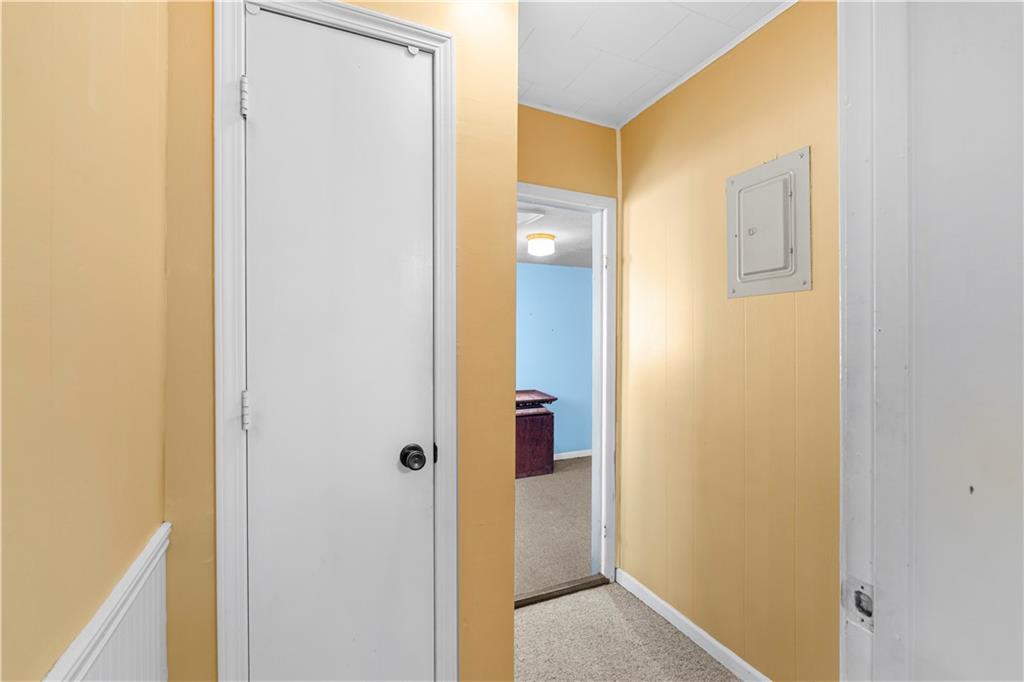 This 2 bedroom, 2 bathroom bungalow offers approximately 1,300 square feet of living space with a practical layout and flexible room options. Wood appearance flooring runs through much of the home while vinyl windows allow natural light to fill the main living areas. The formal dining room sits at the heart of the home and serves as a welcoming space for gatherings and everyday meals. The living room flows easily into the dining area, creating a natural connection between the main living spaces. The kitchen provides ample cabinet storage, generous counter space, and a convenient breakfast bar. A main level laundry area located just off the kitchen adds everyday convenience. Both bedrooms are generously sized, including a primary bedroom with a private bathroom featuring a walk-in shower. The second bathroom is accessible from the second bedroom and is also conveniently located for guest use. An additional room offers flexible space that could serve as a home office, hobby room, or extra storage. The layout also provides the option to create a third bedroom if desired, with the current living room easily transitioning into bedroom space while the formal dining room could serve as the main living area and the spacious kitchen accommodate an eat-in dining setup. Outside, the property features a covered front porch, an attached garage with rear entry access, and a detached shed for additional storage. Rear alley access provides convenient garage entry while on-street parking is available at the front of the home. Located in Rich Hill, Missouri, this bungalow offers flexible living space and approximately 1,300 square feet of living area.