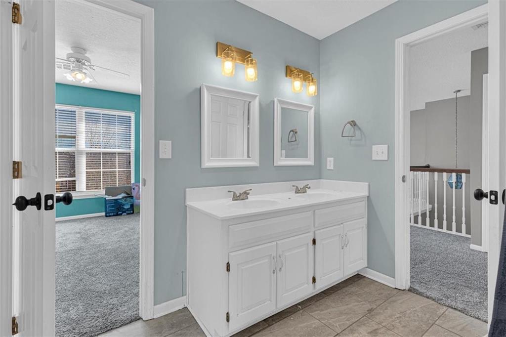 Upstairs 2nd bedroom looking into the jack n jill bathroom