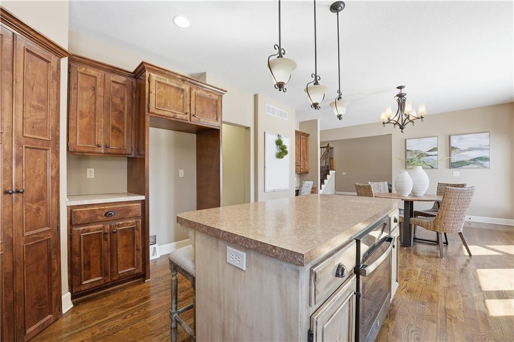Welcome to this unique 1.5 story home located in the desirable neighborhood of Fritchie Bluff in Lee’s Summit. From the moment you walk in, you’ll notice the soaring ceilings in the living room and the abundance of natural light that fills the space, creating an open and inviting atmosphere. The kitchen has been thoughtfully updated and offers generous space for cooking, gathering, and entertaining. Featuring newer appliances and a functional layout, it’s a space that truly works for everyday living as well as hosting friends and family. Just off the kitchen is an impressive laundry/drop zone that will make organization a breeze! A shower was thoughtfully added in the oversized laundry that will be very handy for pets. Convenience meets comfort with the primary bedroom located on the main level, complete with a spacious primary closet that offers plenty of room for storage and organization. Upstairs, each bedroom is impressively sized, and Bedroom #3 provides flexible living options. It could easily serve as a second living area, rec room, playroom, or creative space depending on your needs. This home has been well maintained with newer exterior paint and several interior rooms recently refreshed with a new coat of paint. The HVAC system is also newer, offering peace of mind for the next owner. The basement is lightly finished with beautiful Luxury Vinyl Plank flooring and already includes a half bath. An egress window is in place, making it easy to add a fifth bedroom if desired. Step outside and you’ll find a backyard ready for fun and entertaining. The swing set and pool are both staying, making summer gatherings and playtime simple and enjoyable. As an added bonus, the speakers and receiver will also remain with the home. A well cared for home with flexible living spaces, thoughtful updates, and a backyard ready for memories, this Fritchie Bluff gem is one you won’t want to miss.