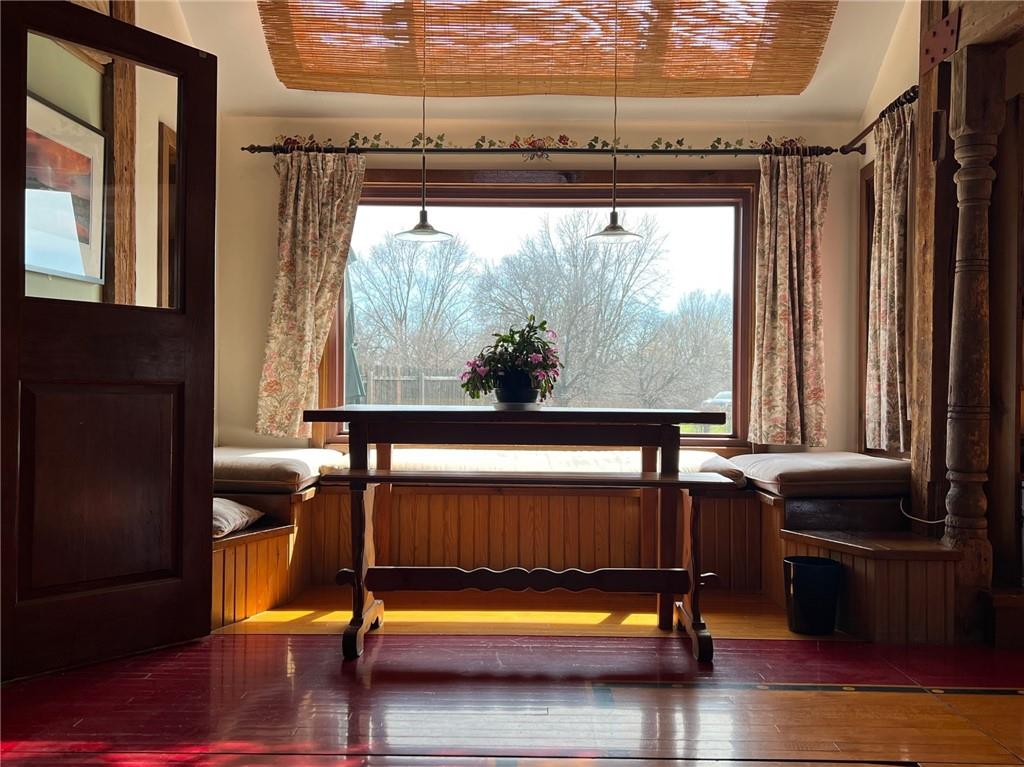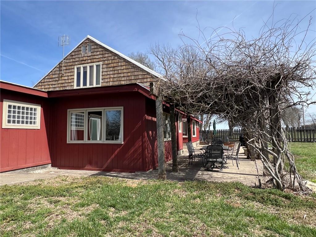 Located 8 miles south of Lawrence in the unincorporated town Pleasant Grove. The unique barn home conversion resides on one of the highest plateaus in Douglas County on 11 acres. This Gable Barn with a hay mow was part of an early European settlement in the 1870s. For approximately 100 years it served as a barn for a productive dairy farm. In the 1970s it was converted into a home. The Brown family had the opportunity to purchase the original basketball flooring from Allen Fieldhouse. They repurposed all the flooring except the K piece, installing it in throughout the home. Much of the 3,600 square feet contains this flooring. Just think, famous basketball player played on this floor! The current owners have enjoyed being the stewards for 20 years, improving the property with recent bathroom and kitchen renovations, new double pane windows and a high efficiency HVAC system. The property contains a mix of green space and old growth timber to the west. The compound still retains a grain silo, old windmill pump, barn, 1950s storage building (could be an art studio or office) and a newer one car garage. This is a magical place. It gushes with a rural Kansas vibe and rich KU basketball history. Who’s next?