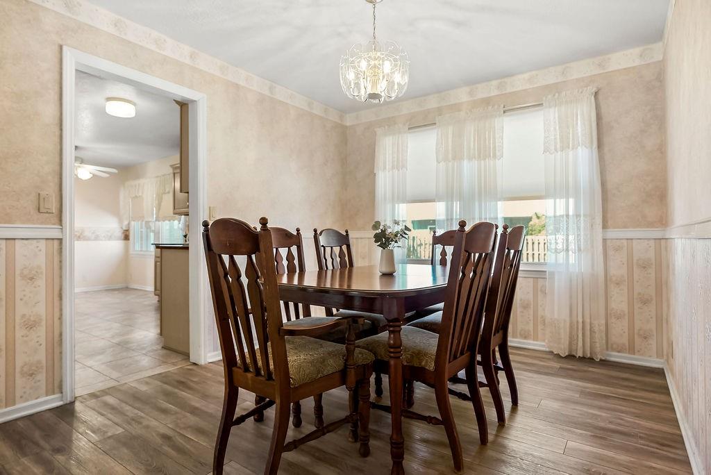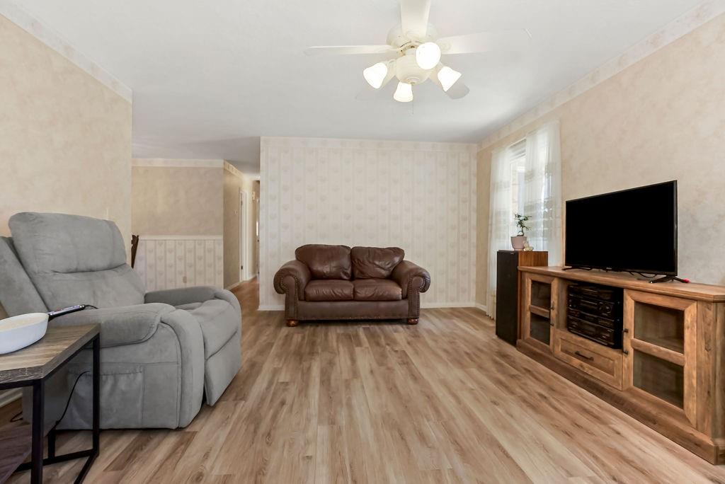 Welcome home to this spacious Kansas City gem, ready for its next owners! The main level features a seamless blend of luxury vinyl plank, hardwood, and tile flooring, creating both style and durability throughout. The kitchen shines with granite countertops, a spacious pantry, and a clean, well-kept feel that’s truly move-in ready. You’ll love the flexibility of multiple living spaces, including a formal living room, a cozy family room with fireplace, and a bright sunroom—perfect for enjoying every season. The primary suite offers its own private retreat with a full bath, featuring tile finishes and a walk-in shower. All bedrooms include hardwood floors and ceiling fans for added comfort. The hall bath is spacious with tile and a convenient shower/tub combo. Downstairs, the finished basement with a half bath is full of potential—just add your personal touch to create the perfect hangout, office, or guest space. Step outside to enjoy a private, fenced backyard ideal for relaxing or entertaining. Located in the Raytown school district! With great curb appeal and a location just minutes from highways, shopping, dining, and everyday conveniences, this home checks all the boxes.