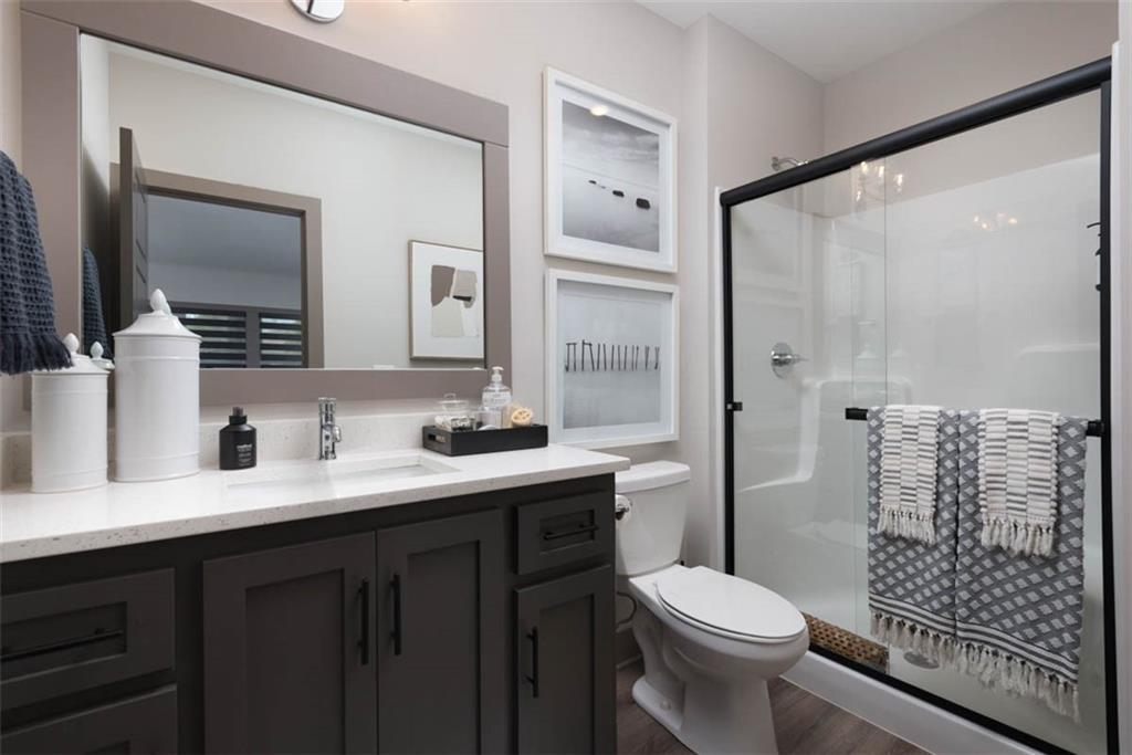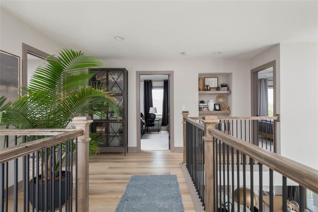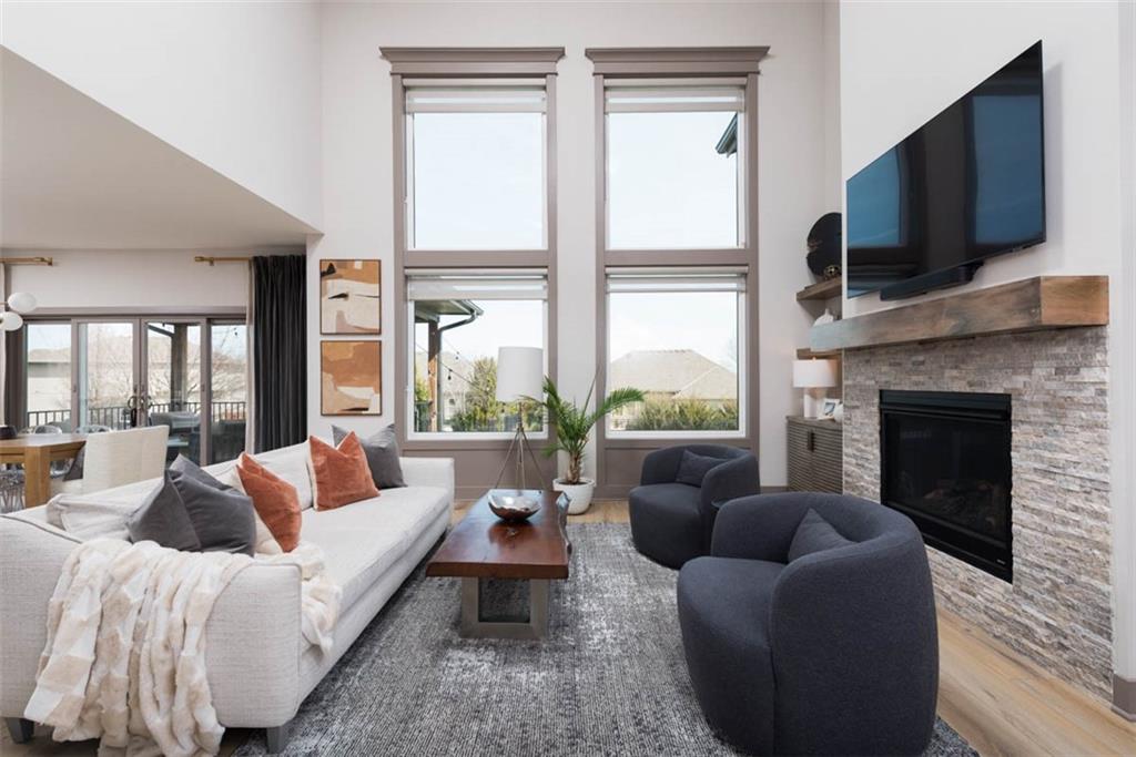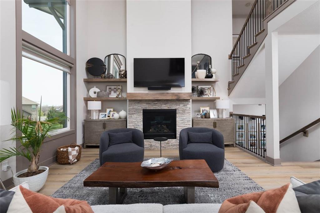 Designer’s personal KC Custom Home…bold, refined, and designed to be experienced, not just seen. Striking curb appeal pairs modern lines with warm stone accents, setting the tone before you even step inside. Soaring ceilings in the 2-Story great room and walls of windows fill the main level with natural light, creating an airy, inviting feel throughout. The living room makes a statement with its dramatic height and beautifully detailed fireplace, flowing seamlessly into a thoughtfully designed kitchen with a large statement island, custom-selected finishes, upgraded fixtures, built-in buffet, and a walk-in pantry that keeps everything effortlessly organized. Designed for both everyday living and hosting, the main level offers a spacious dining area overlooking the covered deck, along with a functional mudroom area and half bath that adds ease to daily routines. The primary suite delivers a true retreat with generous space, a spa-like bath with dual vanities and an oversized shower, and a boutique-style walk-in closet. Additional bedrooms are spacious and well-appointed, offering comfort and privacy for all. The lower level expands your living space with a second living area, stylish bar, additional bedrooms, full baths, and a dedicated exercise room, perfectly suited for entertaining or unwinding. Step outside to a covered deck that feels like an extension of the home, overlooking an XL cul-de-sac lot with a reinforced concrete slab ready for a hot tub and direct gated access to the neighborhood pool. Located just moments from Lake Lotawana’s local favorites and directly across from Stonehaus Farms Winery, this home offers not just beautiful design, but a lifestyle to match! Complete with designer-selected finishes, upgraded lighting, plumbing fixtures, custom blinds, and extended-height garage ceilings that truly set it apart. Truly a must see!