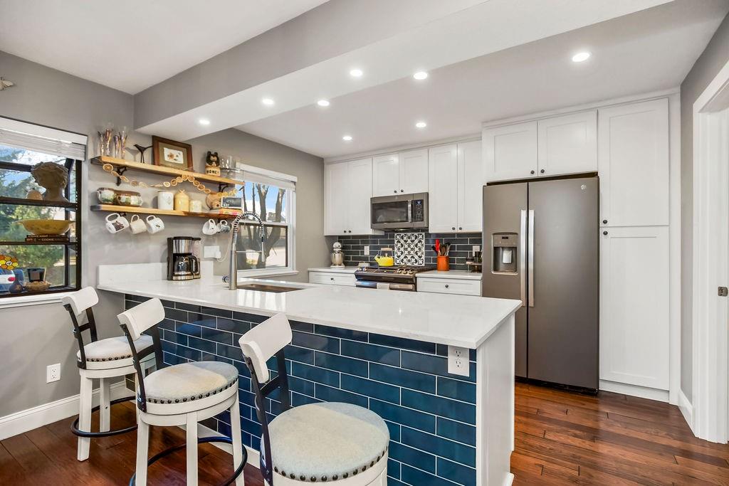 This beautifully updated townhouse offers stylish upgrades, great natural light, and low-maintenance living. Large windows throughout the home fill the space with natural light, highlighting the vaulted living room ceilings, cozy fireplace, and unique steel beam detail that adds character to the space. The fully renovated kitchen features new cabinets, countertops, sink, faucet, backsplash, lighting, and appliances, along with a convenient laundry and pantry area just off the kitchen. Smart switches have been added throughout the home for modern convenience, and all interior paint has been refreshed. Upstairs you'll find two bedrooms, including a spacious primary suite with new carpet, paint, and ceiling fan, plus a walk-in closet and private bath with double vanity. The primary bedroom also features its own private balcony. An additional full bathroom was added upstairs, making the layout even more functional. The finished walk-out basement offers flexible space that can easily serve as a third bedroom, complete with a closet, plus new flooring, trim, and paint. Outdoor spaces include an updated deck with new lighting and fan, perfect for relaxing or entertaining. Monthly HOA covers snow removal, lawn maintenance, tree care, leaf removal, and trash, making this a great option for easy, low-maintenance living.