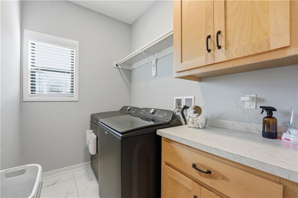 Price Reduction on this STUNNING 1.5 Story Home on a corner cul-de-sac lot. 4 bedroom with 3.5 baths 3 car garage with EV charging. Vaulted ceilings in the living room, Main floor master suite with office on main level. The kitchen offers high end cabinetry to the ceiling with walk in pantry and Calacatta Quartz countertops. 3 Bedrooms upstairs with additional living space. 2 full baths upstairs. Large unfished basement. Covered patio for enjoying your morning coffee and your evenings. Kearney address with Liberty Schools. Upgrades New sliding glass door with blinds, custom blinds throughout, Double front door, soaker tub in master bath, covered patio, sprinkler system