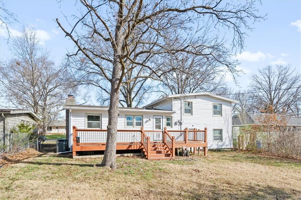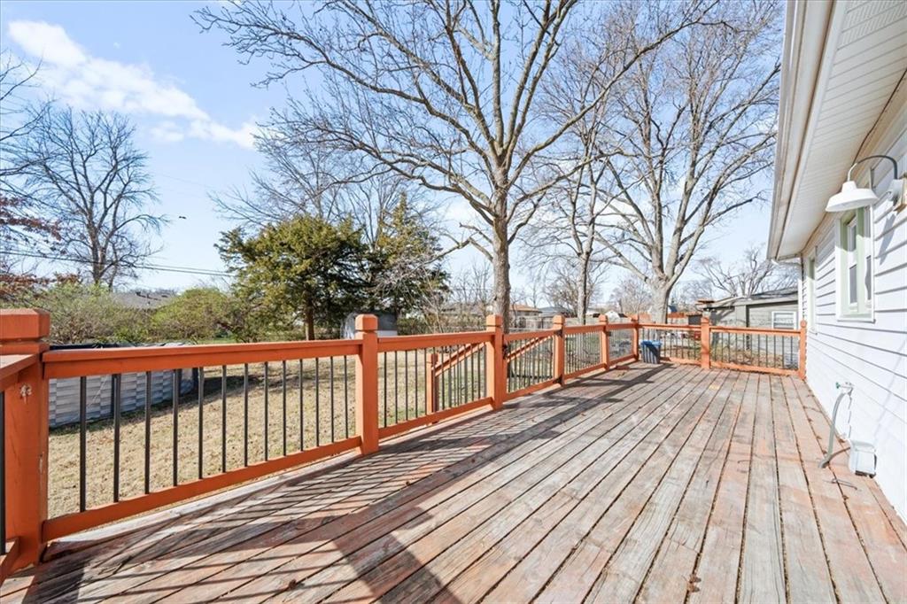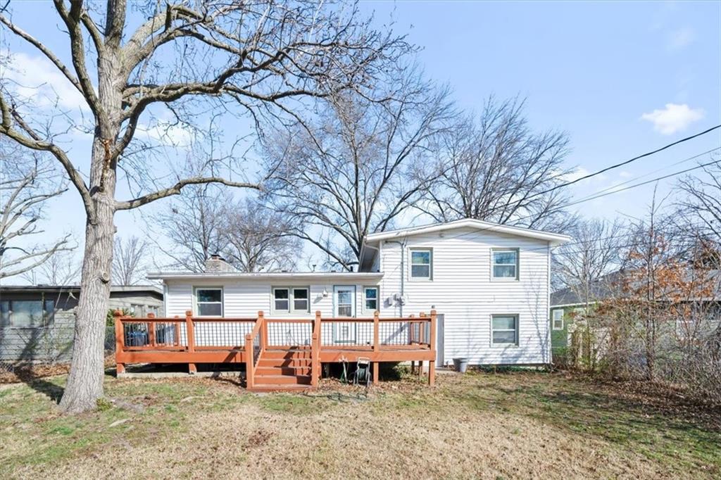 Welcome to this lovely move-in ready 4-bedroom home with a non-conforming 5th bedroom in the basement, offering flexibility for guests, office space, or hobbies. Featuring 2.5 bathrooms and two spacious living areas, this home provides plenty of room to relax and entertain. Original hardwood floors add warmth and character throughout, while recent updates include a newer roof, newer furnace, and newer appliances for added comfort and peace of mind. The finished basement includes a full bath and additional living space, making it ideal for extended living or recreation. Step outside to enjoy a spacious fenced backyard with a large pine deck—perfect for outdoor gatherings. Situated on a quiet cul-de-sac just four blocks south of campus, this home offers a prime location with beautiful mature trees and a welcoming neighborhood feel. Enjoy easy access to nearby schools, including a middle school within walking distance, and just minutes to campus and Allen Fieldhouse. Conveniently located near downtown, as well as popular walking, running, and cycling trails at Baker Wetlands and the Lawrence Loop.