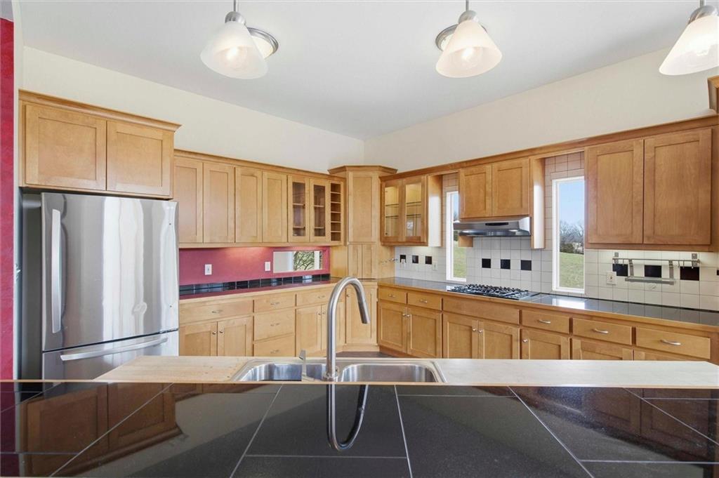 Set just north of Lawrence in the scenic Twin Ridge Heights West rural subdivision, this extraordinary 5.6-acre property offers a rare opportunity to own the personal residence and creative sanctuary of beloved Lawrence artist Louis Copt and his wife, Phyllis. Designed and built in 2002, the home reflects a lifetime devoted to art, craftsmanship, and intentional living. Inspired by the architectural principles of Frank Lloyd Wright, this vertical prairie-style home features expansive overhangs, strong lines, and a seamless connection to the surrounding landscape. Inside, the dramatic living room rises to 20-foot ceilings, anchored by a striking fireplace that uniquely backs to a wood-fired pizza oven imported from Italy—blending function, artistry, and gathering space into one unforgettable focal point. The home itself serves as a canvas, with artistic contributions from local talents Barry Fitzgerald and Kate Dineen woven throughout. Natural light pours into every space, enhancing both the architecture and the home’s gallery-like quality. Currently configured as a 2-bedroom, 2.5-bath residence, the main level includes a large open studio where Louis created much of his work. This space offers flexibility and can easily be converted to an additional bedroom and bathroom. Thoughtfully maintained, the home features a tankless water heater, a new roof in 2022, and a new septic tank installed in 2023. Outdoors, enjoy a peaceful setting with a sauna garden and sauna, storage shed, gardening shed, vegetable garden, and native landscaping. An additional 5-acre parcel directly north is also available (MLS #2605277), offering expansion potential or added privacy. A truly rare offering - where architecture, art, and place come together in a way that is nearly impossible to replicate. Disclaimer: Sight unseen offers may be accepted by the Seller. The Showing Begin Date is subject to change.