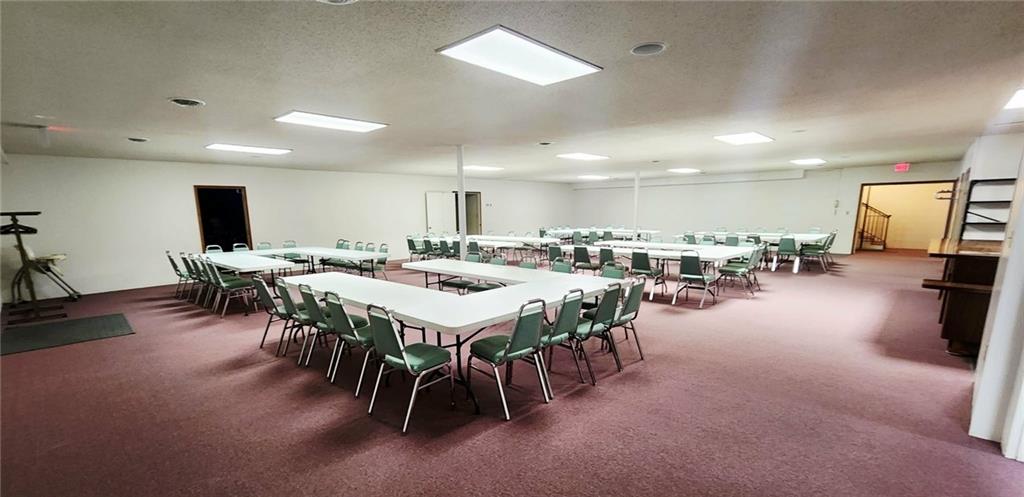 Are you looking for a commercial property that has endless options. Sitting on almost 10 acres the property can be used for multi purposes. The building is almost 9000 sq ft and is suitable for office space as well as a multi purpose facility. There are no stairs to utilize the main level. There is an open span room on the main floor with a center ceiling height of approximately 20ft with space in the front that could be a stage with a sound system or it could be used for light warehouse or climate controlled storage. The front and foyer has multiple rooms for conference rooms, there are bathrooms available at the front and back of the building on the main floor. There is a front and rear stairway to the fully finished basement which has restrooms, a huge open area with multi use opportunities and a large full kitchen as well as a kitchen storage room with two utility sinks and open shelving. In the rear of the basement are 10 rooms, 7 of which are currently used for classrooms and one room for storage and mechanical equipment. There is also outside stairway access to the basement as well as from inside the building. Outside, there is a large attached covered carport/covered entry and a large parking area with parking to accommodate around 300 cars as well as a 2 car garage/shop/storage building. The remainder of the 9.9 acres can be used for any number of options. The opportunity for additional buildings/other business opportunities is endless with enough land to the south and west to accommodate multiple buildings. There are multiple ch/ca units in different areas of the building to insure adequate climate control throughout the building. Call and set up and appointment to see this amazing property.