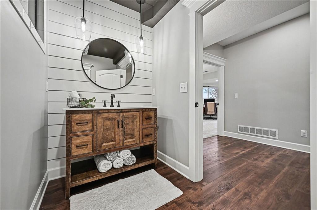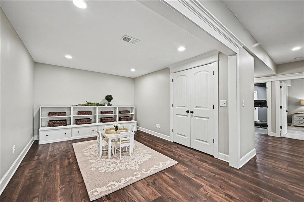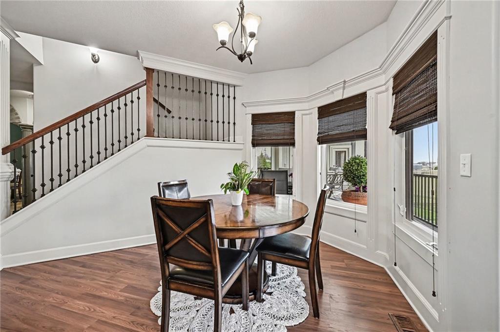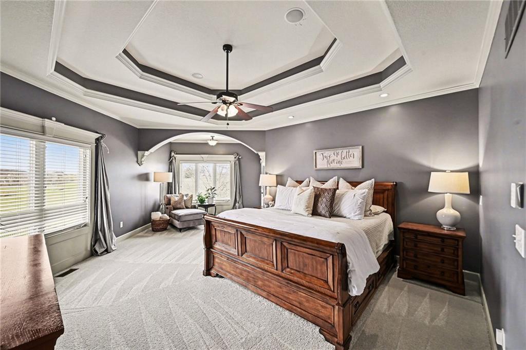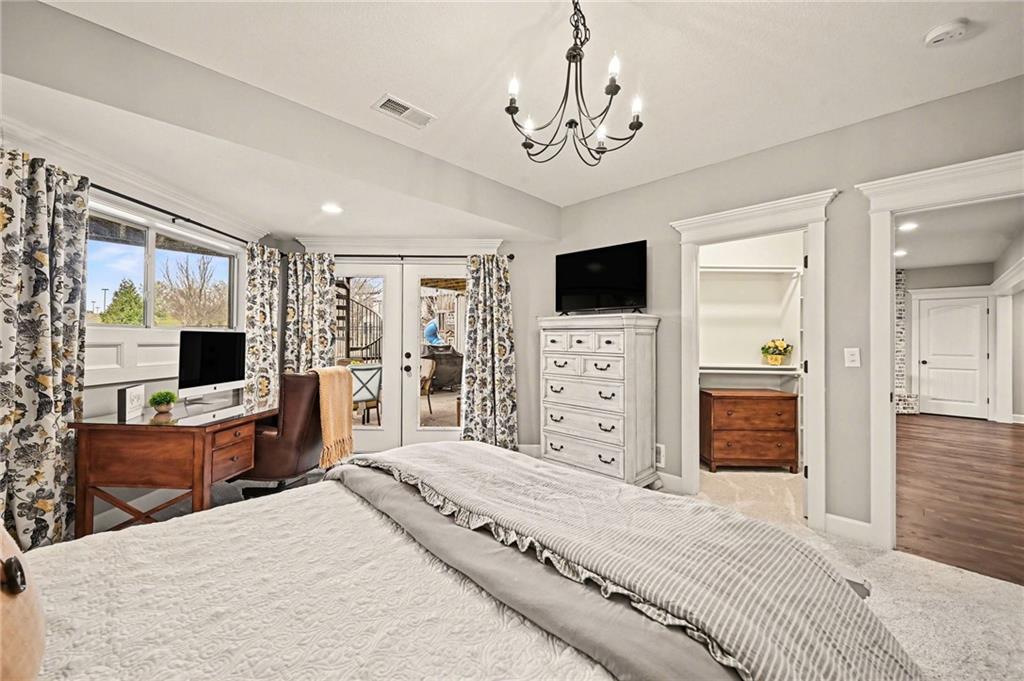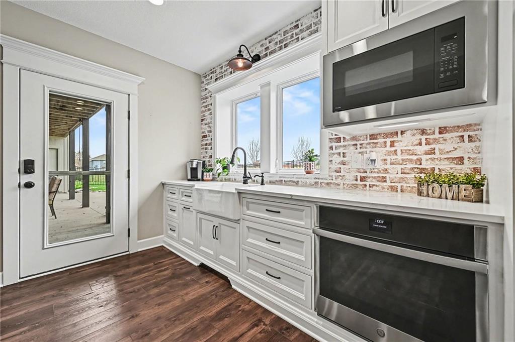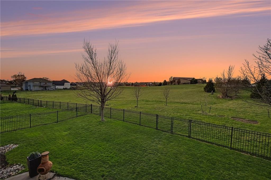 Welcome home! This 5 BR, 4.5 Bath 2-story home with 5,068 finished sq ft plus an additional 1,150 workshop in the basement, is ready for new owners. The main level has new paint and new carpet in the bedrooms and the formal living room, and includes an oversized primary bedroom suite with private bath and a large walk-in closet, with a walkout door to a screened patio. The 2 story-high vaulted ceilings in the formal living room and the dining room flow nicely into the kitchen/dining/hearth room, complete with newly painted cabinets, granite countertops, a spacious island, and gas fireplace. Ready for cozy evenings and easy entrance to screened-in porch to capture stunning sunsets. Main-level living with a laundry room right off the kitchen. The 3-Car garage has two garage door openers & features a utility sink. Second floor has its own HVAC system and includes a spacious loft overlooking the main-level living room and a hidden extra storage space over the garage. The second bedroom has a large walk-in closet & a private bathroom, which is also accessible from the loft area. Bedrooms three & four share a Jack & Jill bathroom with private sinks for each bedroom. The 2021 finished basement includes a large family room exiting to a covered patio, a built-in wine storage area, fireplace, and kitchenette with quartz counters, a luxury bath, a bedroom with private patio doors exiting to a covered patio, an exercise room, and extended finished area that could be converted to theater room, playroom, or extra extended living space. The generous 1,150 sq foot workshop off the finished basement includes a utility sink, a built-in workbench, exterior double doors for easy access to projects, storage, or hobby space. Stubbed for a 5th full bathroom. Outdoor features include manicured landscaping, full wrought-iron fencing, backs up to HOA greenspace & close proximity to a full playground, community center, pool, and walking trails. New, high-impact-resistant roof installed.