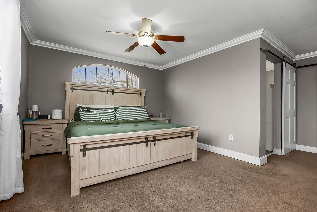 Spacious, easy one-level living at its best! The cozy family room welcomes you with a charming bay window, custom blinds, built-in shelving, and a warm fireplace—perfect for relaxing evenings at home. Entertain with ease in the large formal dining room, featuring classic wainscoting, durable wood-look flooring, and a ceiling fan for added comfort. The open kitchen is a standout with granite countertops, abundant cabinetry, stainless steel appliances, and a pantry for extra storage. The private primary suite is thoughtfully positioned on one side of the home, offering a peaceful retreat with its own ensuite bath and an oversized walk-in closet with stylish barn door. All bedrooms include walk-in closets, ceiling fans, and blinds—plenty of space and comfort for everyone. The third bedroom even offers a bright bonus sitting room or play space filled with natural light. A second full bath features tile flooring and a convenient shower/tub combo. You’ll also love the functional laundry room just off the kitchen, complete with additional pantry space and access to the cellar. Step outside to a HUGE fenced backyard that feels like it goes on forever—ideal for pets, play, or entertaining—plus a spacious deck ready for grilling season. Car enthusiasts, hobbyists, or small business owners will appreciate the attached 1-car garage AND the impressive 768 sq ft workshop next door, complete with a 2-car garage door, electricity, and a 10x10 covered entry. Bonus: Brand new roof! All of this sits on a desirable corner lot—giving you space, flexibility, and room to grow.