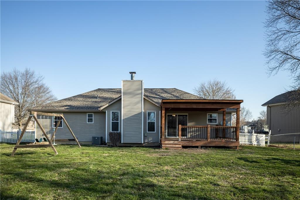 Location! Location Location! This well-maintained 3-bedroom, 2-bath ranch offers the ease and comfort of true one-level living. Nestled in the back of a quiet subdivision, this home offers a peaceful setting with minimal traffic and is within walking distance of Grain Valley Schools. The home features a 2 year old roof, low-maintenance exterior with durable vinyl siding and the convenience of main-level laundry. The finished basement expands your living space with a versatile layout that includes a rec room with a bar and a pool table, a family room that is perfect for movie nights and a bonus room that can serve as a home office, gym, or flex space. The basement is already stubbed for a future half bath, offering additional potential. Step outside to a large, level, fully fenced backyard with a newer covered deck (maintenance free decking)—an ideal space for relaxing or hosting guests. With no backyard neighbors and direct access to the scenic/paved Blue Branch Creek Trail, you’ll enjoy added privacy and a peaceful outdoor setting. This solid well-maintained home is ready for your personal touch, offering a great opportunity to add your own style through cosmetic updates. The seller is selling "as-is" with inspections welcomed.