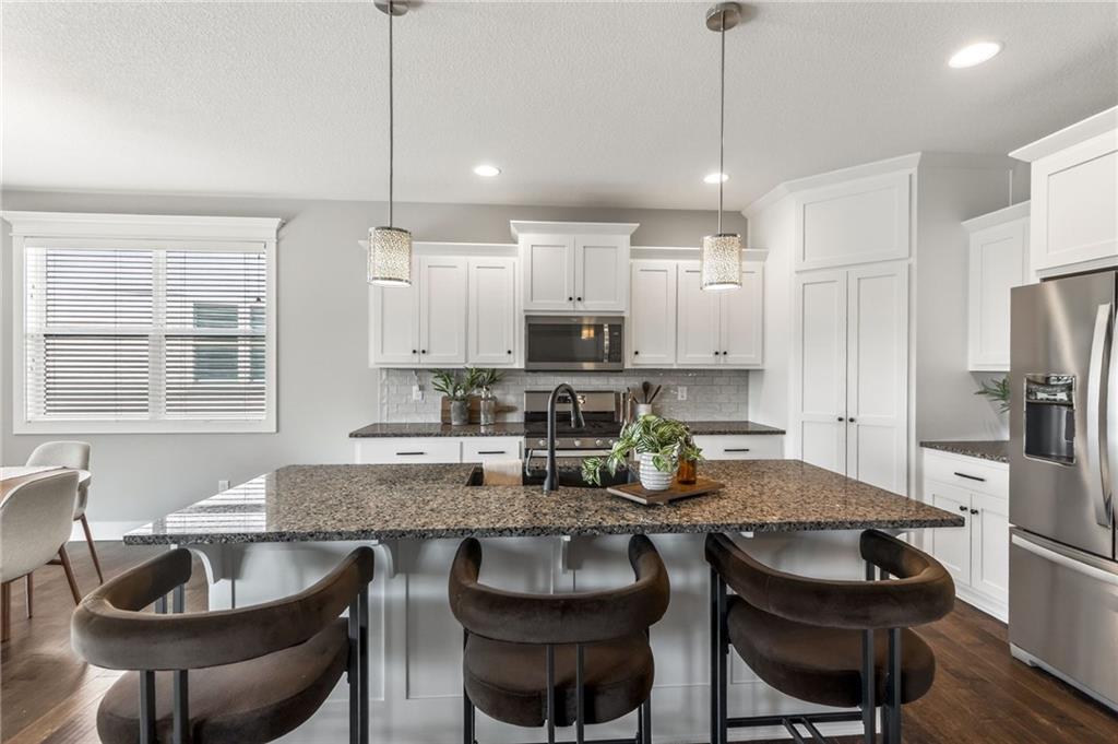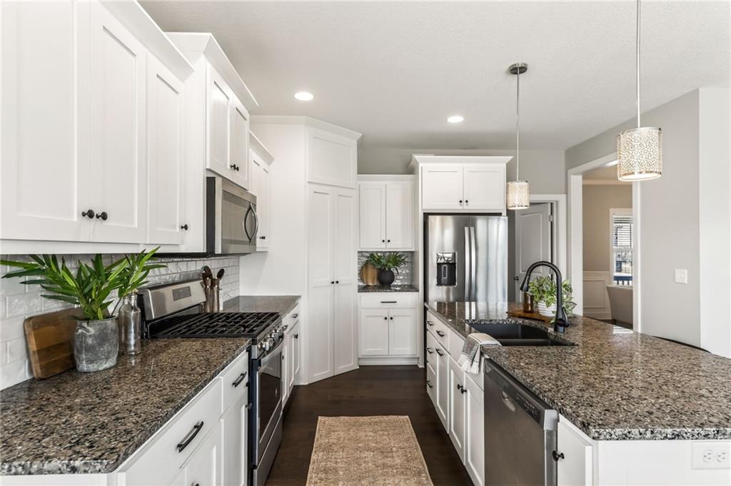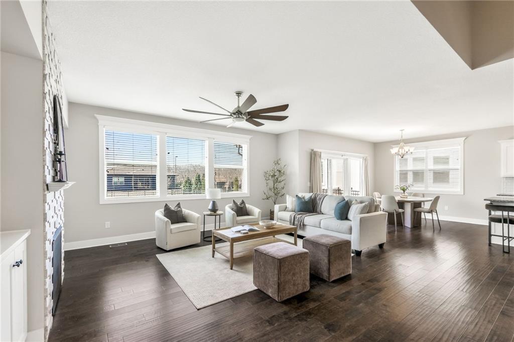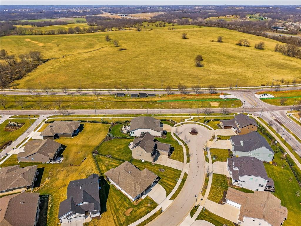 Welcome to this rare 6-bedroom, 5-bathroom luxury home that truly feels better than new. The owners have put in over 100k of upgrades in the last couple years in addition to it being a former parade of homes house built with premium finishes. A main-level bedroom offers incredible flexibility with direct access to a full bathroom and to the 3rd garage, making it ideal for guests, multi-generational living, or a private office setup. This house has all of the qualities you see in a new build plus major upgrades like a whole home generator, solar panels, Halo water filtration, HVAC ionizer air purification, and an extended front room that can serve as a formal dining, sitting room, or piano space. You’ll love the open floor plan highlighted by a stunning wall of windows, built-ins, a floor to ceiling fireplace, rich engineered wood flooring, and a chef-inspired kitchen featuring a center island, HUGE walk-in pantry, granite counters and custom cabinets. Upstairs, the expansive primary suite is a true sanctuary complete with a luxurious tub, tiled shower, his/her vanities, and an impressive walk-in closet. Three additional oversized bedrooms all have walk-in closets and bathroom access. The newly finished basement adds even more living space, including a 6th bedroom, beautifully finished bathroom with an incredible spa-like shower, and room designed for fun — already stubbed for a wet bar and measured for a shuffleboard table. Every basement window is an egress, adding safety and peace of mind. Step outside to enjoy the flat backyard, surrounded by a no-maintenance aluminum fence. A sprinkler system keeps the lawn looking great as you relax and enjoy the night on the covered back patio. Located on a cul-de-sac in Liberty Schools and part of an amenity-rich community featuring multiple pools, a lazy river, water slides, scenic trails, and more, this home offers a lifestyle that is truly hard to match.
