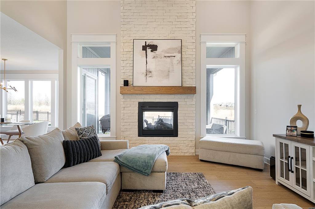 Stunning Award-Winning 1.5-Story will back to the future Blue Valley elementary school. This floor plan is designed for luxury and functionality. Thoughtful details include wood end caps, iron spindles, and vaulted ceilings, creating an elegant and spacious feel. The see-through fireplace seamlessly connects the great room to the covered patio, perfect for indoor-outdoor living. The center-island kitchen shines with painted cabinetry, offering both style and practicality. The main-level owner’s suite is a true retreat, featuring an oversized closet and a spa-like walk-in shower with dual shower heads. The office located off the entry provides the perfect work-from-home or study space. Tesla charger installed in garage stays with the home. Sundance Ridge’s premier amenities are now open! Enjoy a state-of-the-art fitness center, a resort-style pool, and scenic nature trails. Planned future amenities include a full gymnasium, pickleball and bocce ball courts, a playground, and a community garden. Clubhouse & first pool now open! Don’t wait—schedule your tour today!