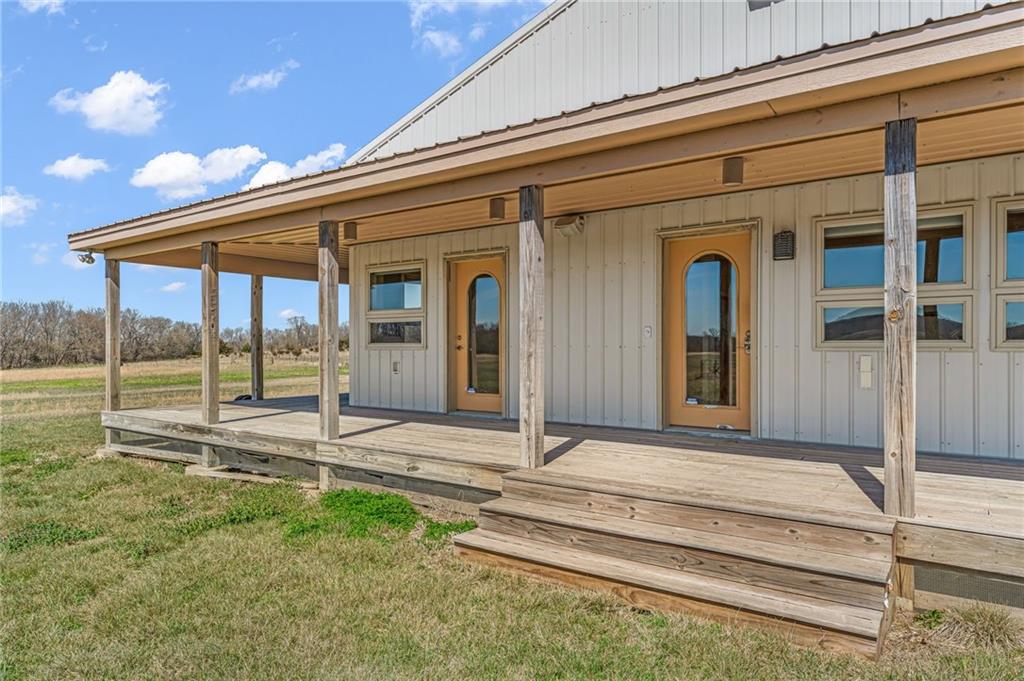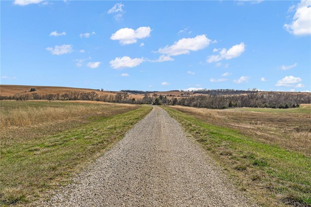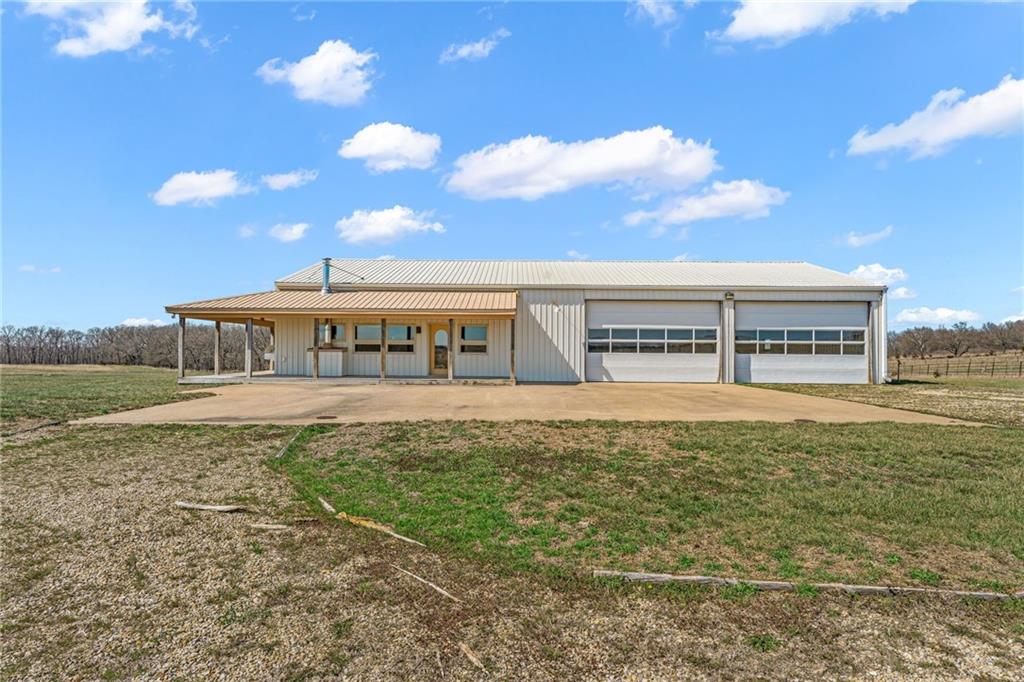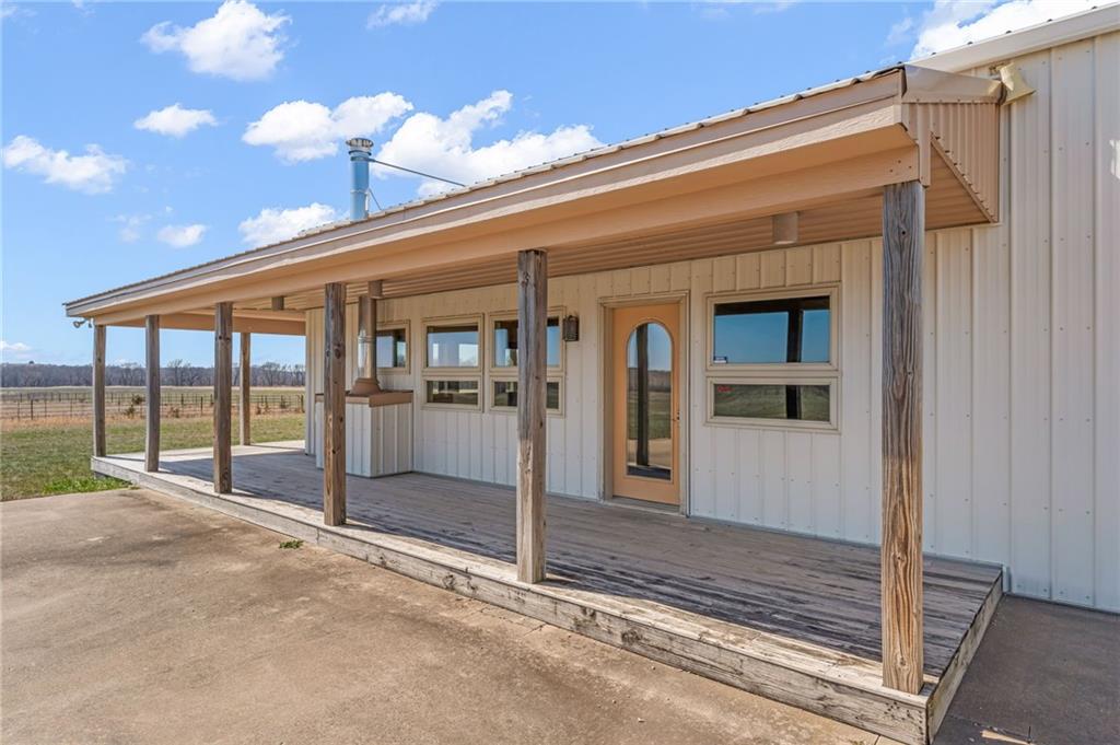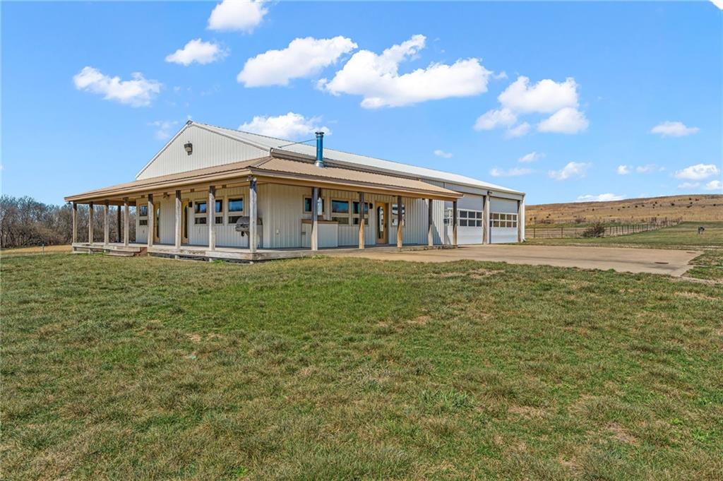 Unique 363-acre ranch in Douglas County near Overbrook offering exceptional versatility for horses, cattle, hunting, and recreational use. The property has a proven history as a working cattle operation with welded pipe pens and multiple automatic watering stations, along with four small ponds. Over half of the perimeter borders US Corps of Engineers land, providing nearly 2 miles of direct access to hiking and horse trails that connect to Rockhaven Horse Park, a rare feature for horse owners and outdoor enthusiasts. The barndominium includes approximately 1200 sq ft of finished living space with 1 bedroom and 1 bath, plus an additional 2000 sq ft of unfinished space ready for expansion. A wrap-around porch offers space to take in the surrounding views. A separate outbuilding with two more large overhead doors adds additional storage or workspace. Positioned roughly halfway into the property, a highpoint rising more than 150 ft above the road slopes toward Clinton Lake and provides an ideal future building site, while the existing barndominium could serve as an ADU. Seller would consider offers on less than the entire acreage, currently shown as 7 parcels by Douglas County.