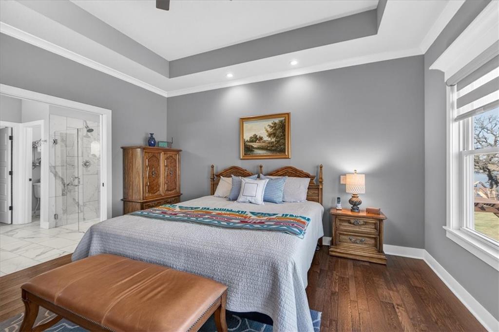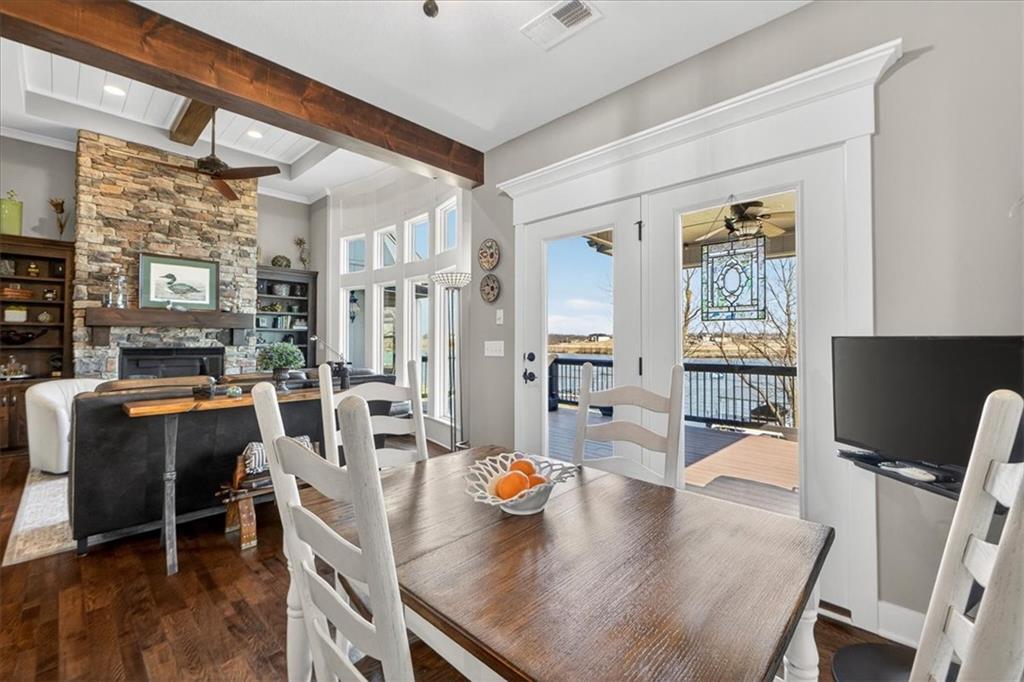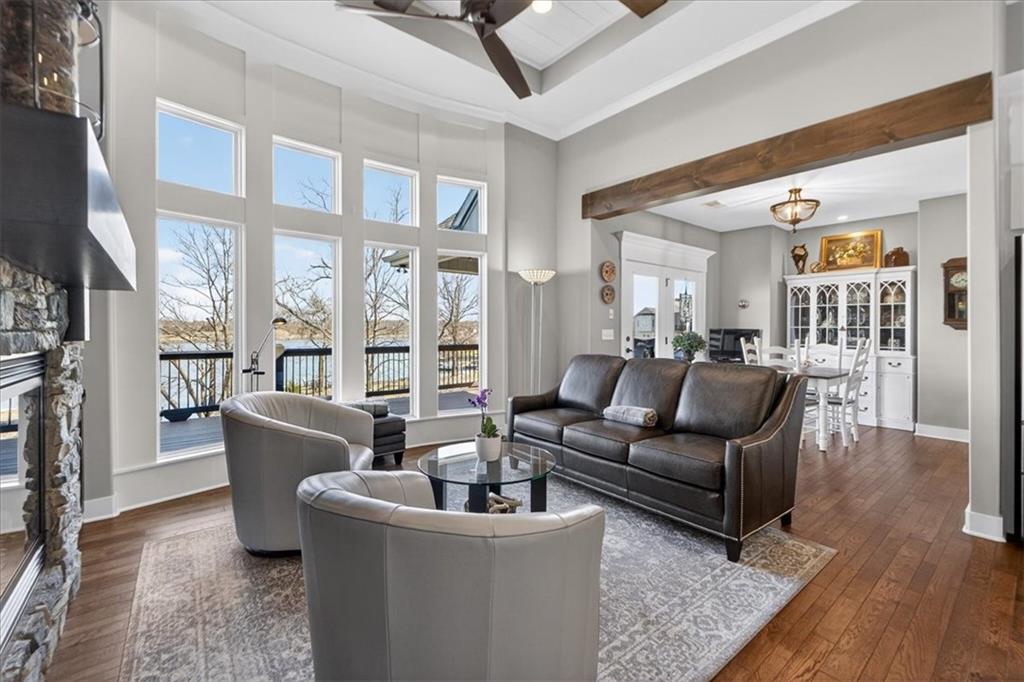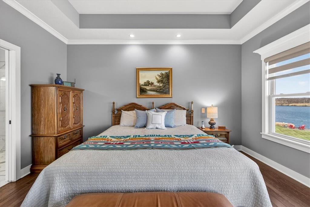 Discover an extraordinary luxury lakefront residence in Creekmoor where timeless design, custom craftsmanship, & breathtaking views come together in a way that is rarely offered. This stunning 3-bedroom, 3-bath home w/a walkout basement is perfectly positioned on the lake & includes a private dock, creating a lifestyle defined by beauty, comfort, & waterfront living. From the moment you enter, the home unfolds w/an elegant yet inviting feel, featuring soaring ceilings w/beautifully detailed coffered craftsmanship, rich hardwood floors, & an impressive stone fireplace that anchors the main living space. Expansive windows showcase the lake beyond, filling the home w/natural light & creating a seamless connection between the indoors & the peaceful waterfront setting. The kitchen overlooks the lake, offering a front-row seat to peaceful mornings, glowing sunsets, & the kind of everyday moments that feel anything but ordinary. Just beyond, the oversized deck overlooking the water extends the living space outdoors & offers the perfect setting for morning coffee, sunset gatherings, or simply taking in the peaceful surroundings. The primary suite is a true retreat, also positioned to overlook the lake so you can wake each morning to soft natural light & beautiful sunrises over the water. The primary bathroom offers a spa-like feel w/a zero-entry shower & a large walk-in closet. The walkout basement adds exceptional flexibility, featuring a large 3rd bedroom & a 4th non-conforming bedroom that can easily serve as a guest space, a private office, or additional living area. One of the home’s most remarkable features is the HUGE suspended garage, offering endless possibilities for premium storage, a home theater, golf simulator, gym, workshop, or future custom expansion tailored to your lifestyle. Built by Signature Builders, this is a truly distinctive home with a level of design, setting, & opportunity that is hard to replicate.