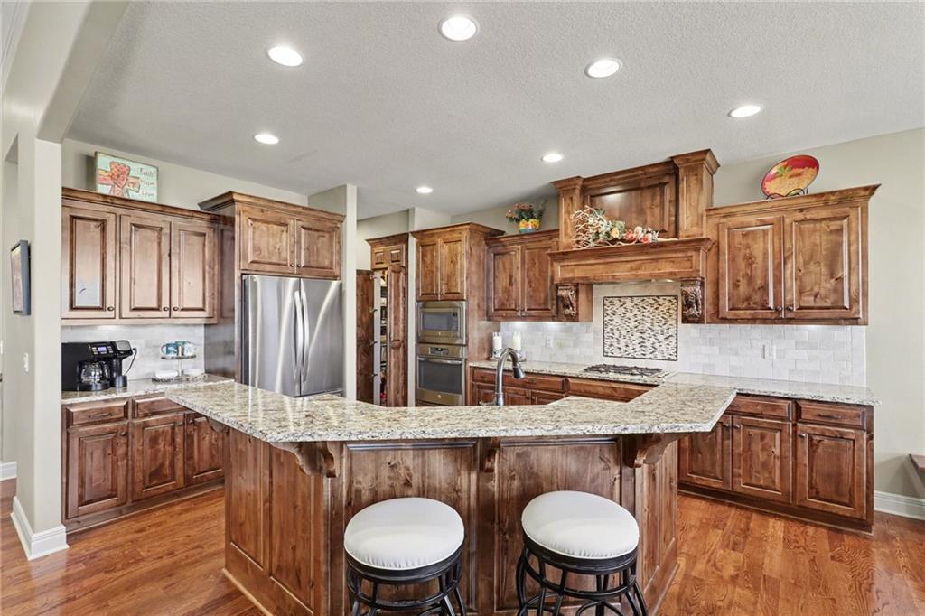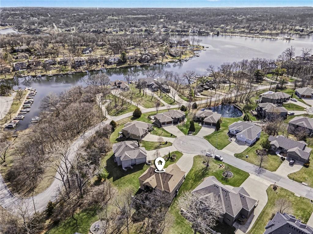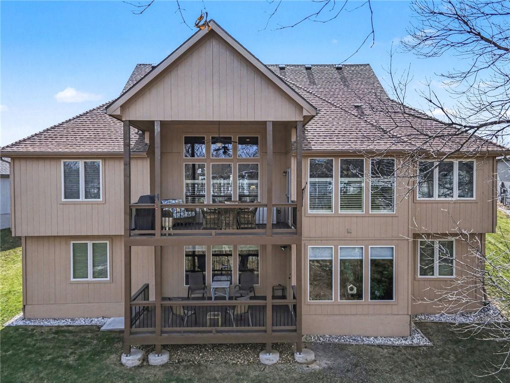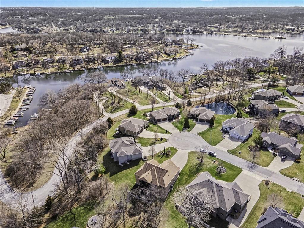 Here is your chance to get into Weatherby Lake to enjoy all the lake activities for the summer! Boating, swimming, kayaking, paddleboard, fish or just relax and soak up the sun! West Ridge area on the West side of the city, is the newest area of homes and this is your opportunity to own a gently lived in and meticulously maintained main level living home. Situated on a culdesac lot with mature trees to enjoy nature while sitting on your covered deck. The open concept plan has a wall of windows to enjoy the views, stone fireplace surrounded by custom built ins, chefs kitchen with gas cooktop / walk in pantry / spacious granite counter island, all perfect for your gatherings. With most of the main level having gleaming hardwood floors and rich architectural details including extensive crown molding and lofty ceilings. A primary suite with all the upgraded details is on one side of the home to create a private retreat. The primary bath includes a tub, walk in tiled shower, double vanity with granite counters and a light filled walk in closet. On the opposite side of the home is the secondary bedroom and second full bath for guest use or private entry from the bedroom. The walkout basement is perfect for entertaining with a granite counter wet bar area, media area and game area. This walks out to a lower level deck to the backyard. Bedrooms 3 and 4 are in the basement with amazingly large walk in closets! The 3rd full bath with granite and tile features is situated between the bedrooms. Plenty of unfinished storage to support your needs. Additional features include custom plantation shutters, custom window coverings, water purification system, kitchen refrigerator stays, zoned heating and cooling, and 1 year old roof and gutters. Flat, South facing driveway with 3 car garage. Come join this vibrant community with activities for all ages. Small town feel and private lake for residents to enjoy!
