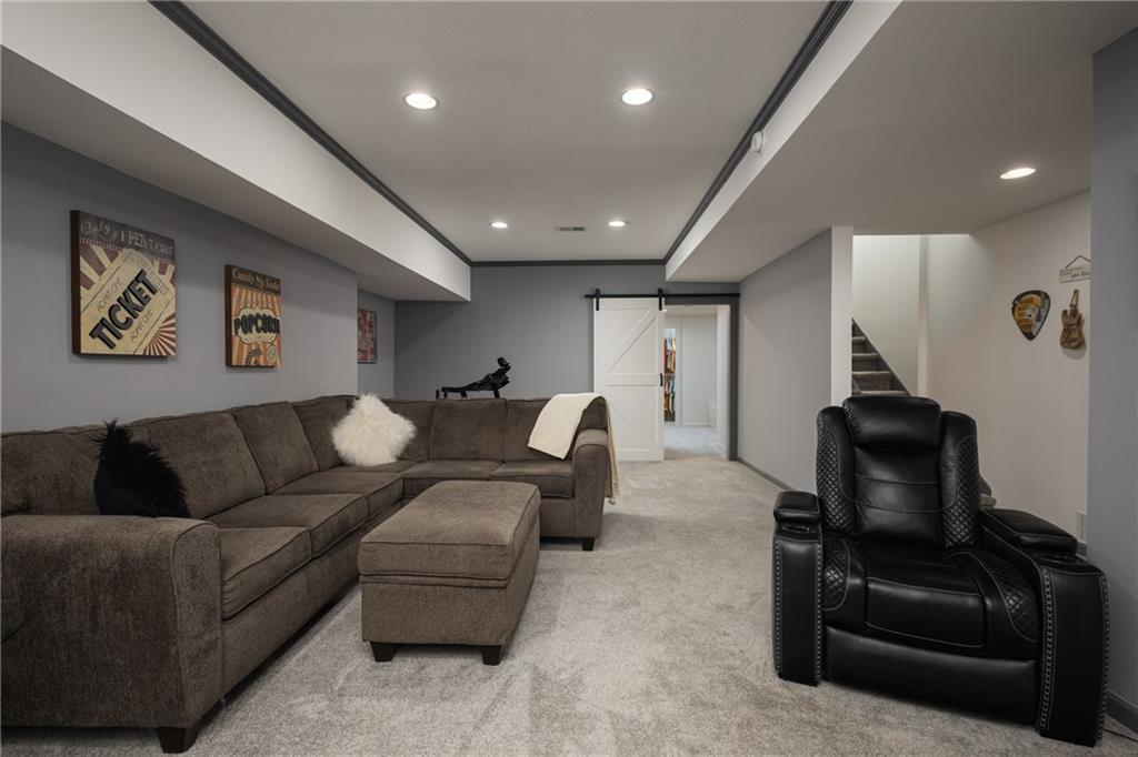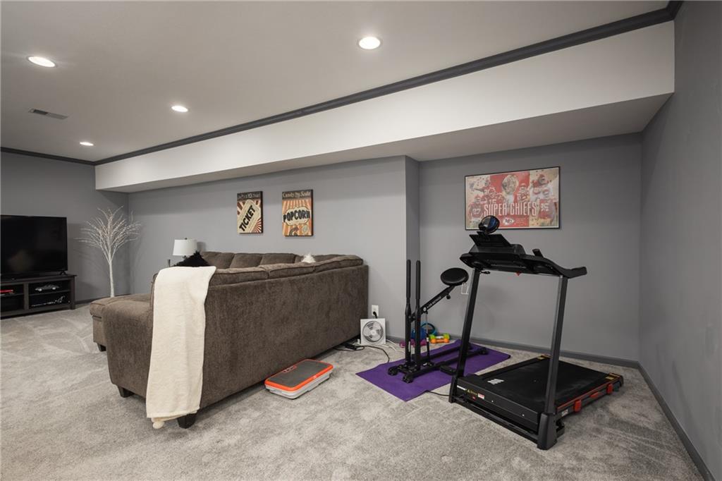 This spacious and beautifully appointed 2-story home offers 5 bedrooms, 3 full bathrooms, and 1 half bath, providing plenty of room for comfortable living and entertaining. The main level features an open and functional layout with granite countertops, a large walk-in pantry, and pre-wiring for surround sound—perfect for hosting or relaxing at home. A versatile flex space offers the option for a formal dining room or a home office. Upstairs, you’ll find the conveniently located laundry room along with generously sized bedrooms. The HVAC system is zoned to keep the upstairs just as comfortable as the main level all year long. The primary suite is a true retreat, featuring ample space, a walk-in closet, and a luxurious en-suite bath complete with a jetted tub. The finished basement expands your living space even further, offering endless possibilities along with abundant storage throughout the home. Step outside to enjoy the fenced backyard and patio—ideal for outdoor gatherings, kids, or pets. Car enthusiasts or those needing extra space will appreciate the 3-car garage. Located in a vibrant, family-friendly neighborhood filled with activity, residents enjoy access to incredible amenities including two pools, walking trails, and a scenic 30-acre stocked lake. Situated in the highly desirable Lee’s Summit School District, this home combines space, comfort, and community in one exceptional package.