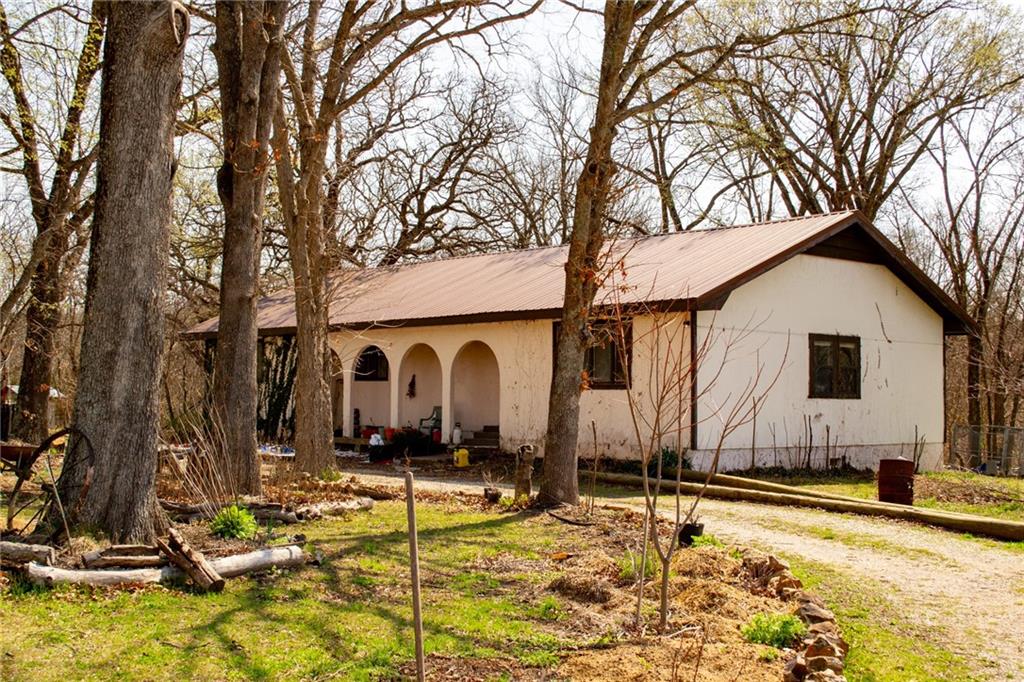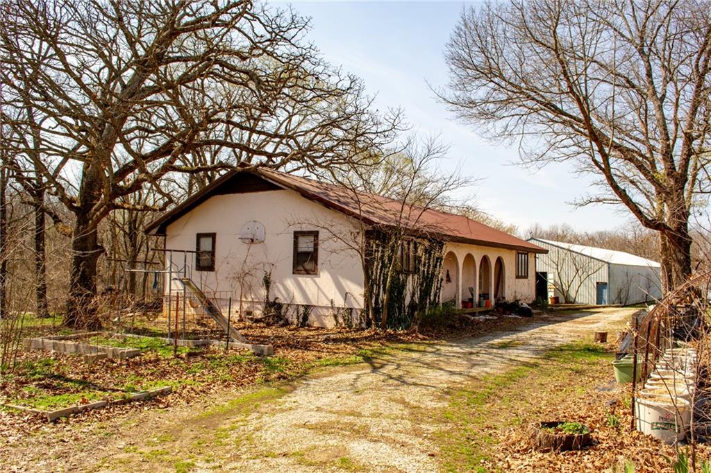 This rural home offers lots of promise to investors and do-it-yourselfers looking for a great opportunity to quickly build equity in a country estate. Just a few miles from Stockton Lake, this Spanish style home and acreage has a lot to offer. Stately oaks adorn the yard, offering plenty of shade and a striking presence. Numerous flower beds erupt in color and four archways welcome you onto the front porch, inviting a swing or some outdoor chairs for relaxation. Indoors, you'll love the spacious living room, where the country aesthetic is enhanced by the rough sawn beam ceiling. A wood stove promises toasty warmth on the coldest of winter days. The kitchen is spacious, but needs subfloor repair and new flooring. It features an island and plenty of cabinet space and is ready for your own custom touch. All four bedrooms and both bathrooms are located on the main floor, as is the laundry. The unfinished basement offers additional storage, a workbench, and shelter, and has a door to the back yard. Structurally, the house seems sound. Most of the work needed is cosmetic, including sheetrock, floor repairs, HVAC duct repairs, and painting. Horse lovers are especially sure to find the property to their liking. The crown jewel for the equestrian owner is the 60'x120' enclosed riding arena, complete with a sand floor, lighting and water. Another 30'x70' livestock barn affords more space for your livestock or pets, as as does a smaller loafing shed. If you're not into horses, the riding arena could be converted to boat and RV storage. With thousands of visitors to Stockton Lake each year, it's a sure bet that many of those visitors would prefer to store their boats and campers. With this property's location just minutes from the lake and on a paved highway, high demand for enclosed storage seems likely.