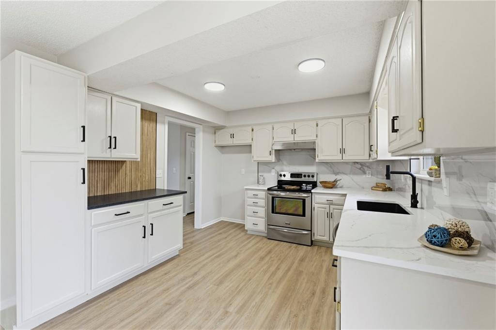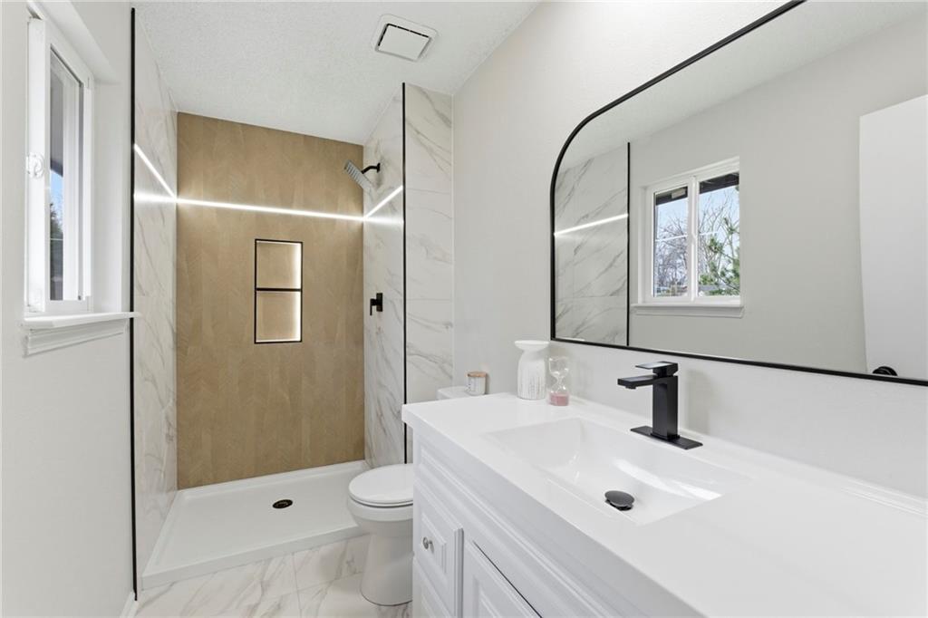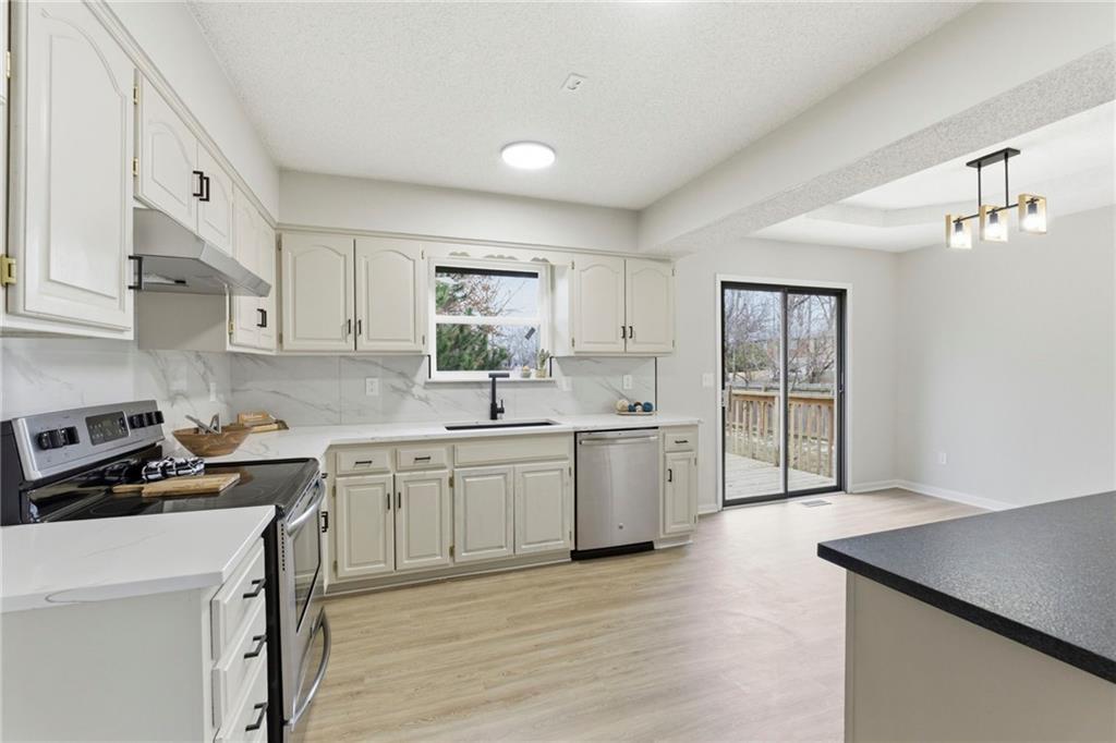 Back on market at no fault of the seller. Welcome to this stunning 3-bedroom, 2-bath home with a 2-car garage, perfectly situated on a spacious corner lot with a large backyard enclosed by a full privacy fence; ideal for entertaining, pets, or relaxing in your own secluded outdoor space. This home has been fully transformed from top to bottom, showcasing high-end finishes and thoughtful design throughout. Step inside and you’ll immediately notice the custom tilework crafted by one of Kansas City’s top luxury tile designers, featuring striking patterns and custom niches. Enjoy the ambiance of laser track lighting with dimmable features, allowing you to set the perfect mood in every room. The kitchen is a true showstopper with a sleek, seamless large-format tile backsplash, paired beautifully with contrasting white and black quartz countertops—modern, clean, and built to impress. Beyond the aesthetics, this home offers peace of mind with major updates already completed, including: new windows, new roof, new water heater, new carpet, and fresh interior and exterior paint. With its combination of designer finishes, modern upgrades, and functional layout, this home stands out from anything else on the market. Don’t miss your chance to own a truly one-of-a-kind property in Kansas City; schedule your showing today!