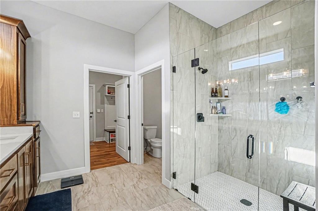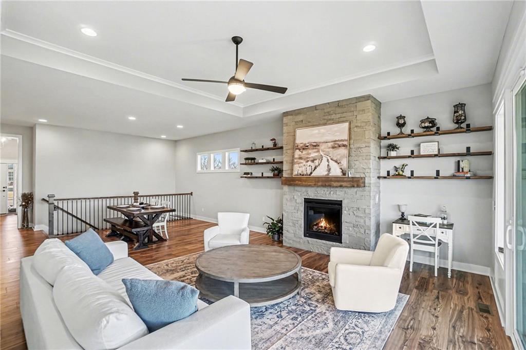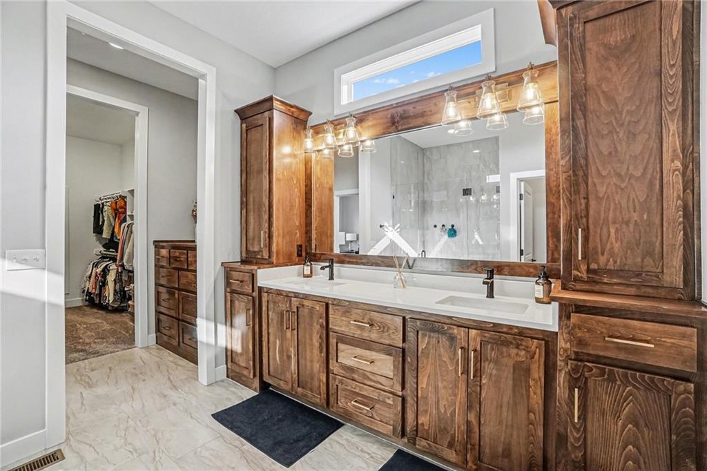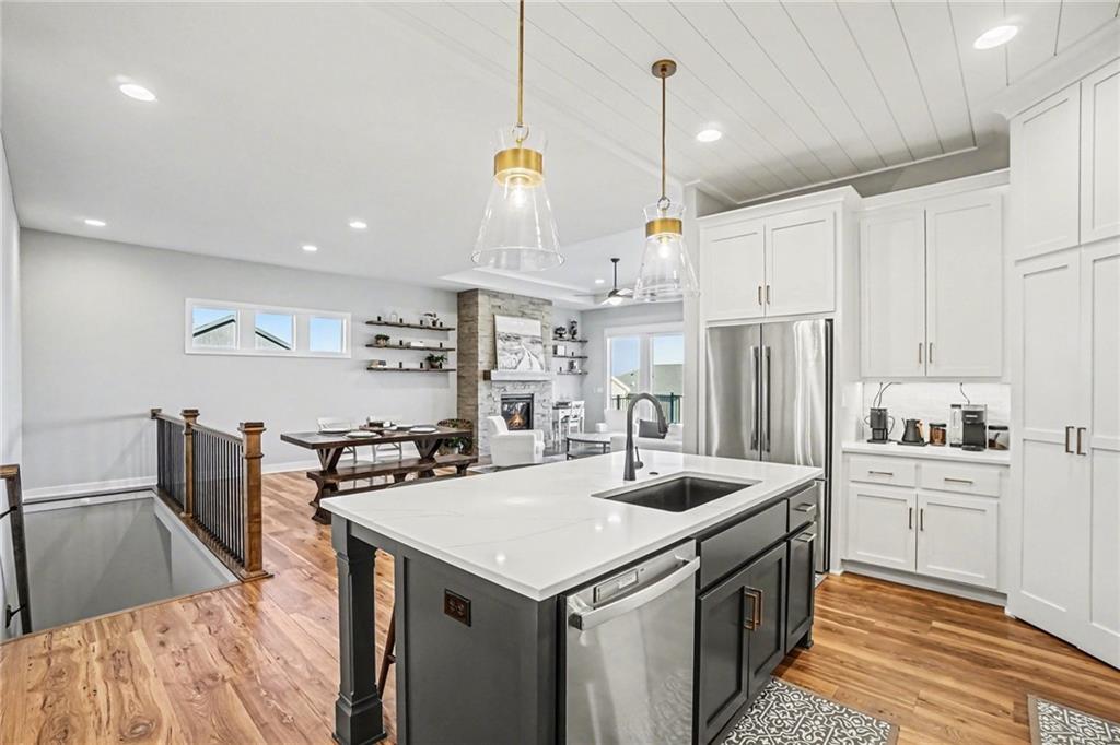 Home sweet home awaits in this Inspired Homes’ Sonoma, a stunning reverse 1.5-story residence that offers the feel of nearly new construction with thoughtfully designed living spaces throughout. This 4-bedroom, 3.5-bath home blends modern finishes with a functional layout, all situated on a desirable, spacious walkout lot. The main level is designed for convenience and comfort, featuring a spacious primary suite with an oversized walk-in closet and a well-appointed ensuite bath. An additional main-level bedroom with ensuite bathroom provides flexible space for guests, a home office, or additional living needs. Laundry, as well as a half bathroom are also conveniently located on the main floor. The heart of the home is the chef-inspired kitchen, complete with a high-end gas cooktop, built-in appliances, quartz countertops, stainless steel finishes, shiplap ceiling and ample cabinetry. The kitchen flows seamlessly into the great room, where a floor-to-ceiling stone fireplace and expansive windows create a bright and inviting atmosphere. Step outside to the oversized covered deck—ideal for enjoying the outdoors or entertaining. The finished walkout lower level expands your living space with a large recreation area, wet bar, and two additional bedrooms and another full bathroom, offering versatility for a variety of uses. Additional highlights include a 3-car garage with a 4-foot extension, providing extra storage and functionality. Residents enjoy access to community amenities including walking trails, a pool, and a playground—offering opportunities for recreation and relaxation in a well-maintained setting. This home offers a move-in ready opportunity with a balance of style, space, and thoughtful design.