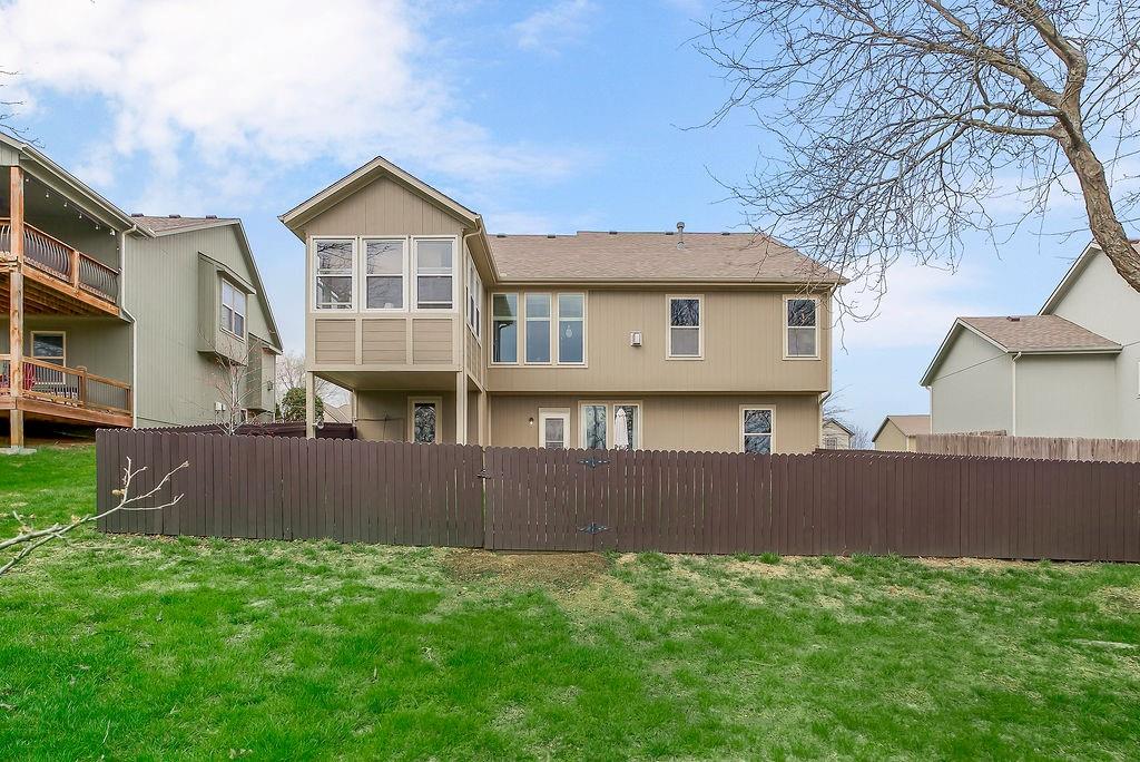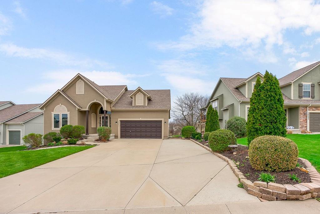 Stunning 4 bedroom, 3 bath reverse 1.5 story nestled on a cul-de-sac, offering a walk-out lower level to a fully fenced backyard. This meticulously maintained home features fresh paint inside and out, new carpet in bedrooms and stairs and newly landscaped grounds — truly move-in ready. The thoughtful layout places the primary suite and a second bedroom and full bath on the main floor, while the lower level offers a second living area, two additional bedrooms, and a third full bath — just the right amount of space for everyone. The open floor plan is packed with modern features and designed for comfortable living and entertaining. At the heart of the home, the kitchen, dining area, and great room flow seamlessly together, anchored by a cozy gas fireplace. The kitchen showcases custom cabinetry, granite countertops, a large island, and a pantry for ample storage. A wall of windows floods the great room with natural light and frames beautiful views of the backyard. Step into the sunroom, an additional 110 sq feet, is just off the dining area — the perfect spot for your morning coffee or evening wind-down, with more serene backyard views. The lower level recreational room walks out to a patio and the fenced backyard, and the property extends beyond the fenced area for added space. Conveniently located near highways, retail, dining, and entertainment — this home truly has it all!