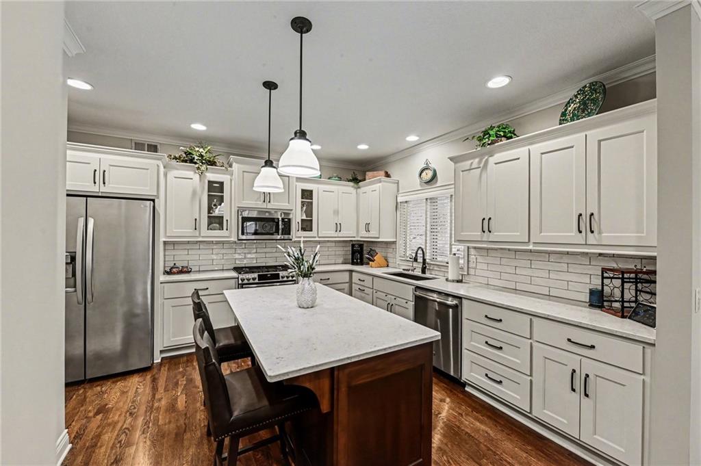 Stunning, like-new Reverse 1.5 Story twin villa in sought-after Covington Court! Popular Alderwood II plan with a private driveway, built by award-winning Tom French Construction. Former model with all the upgrades! Wonderful open floor plan with gorgeous crown molding and hardwood floors. Beautiful kitchen with a large center island, stainless steel appliances, gas range, quartz countertops, hidden outlets, and a pantry. Perfect office nook off the kitchen with a built-in desk. Spacious great room with a stone fireplace and tray ceiling. Cozy dining room has stunning wood beams. The main floor primary suite has a walk-in closet and spa-like bath with a double vanity, quartz countertops, a walk-in shower, and a large free-standing soaker tub. The finished daylight lower level has a family room, two bedrooms, a full bath with a tiled shower and quartz countertop, and a large storage space. Enjoy the screened-in porch with added grilling space, perfect for entertaining. Great HOA amenities, including a neighborhood pool, roof and gutter repair/replacement, lawn/landscape maintenance, snow removal, building insurance, exterior painting, irrigation maintenance/water for sprinklers, plus lots of social activities. HOA dues are $350/month and $865/year.