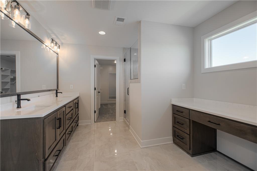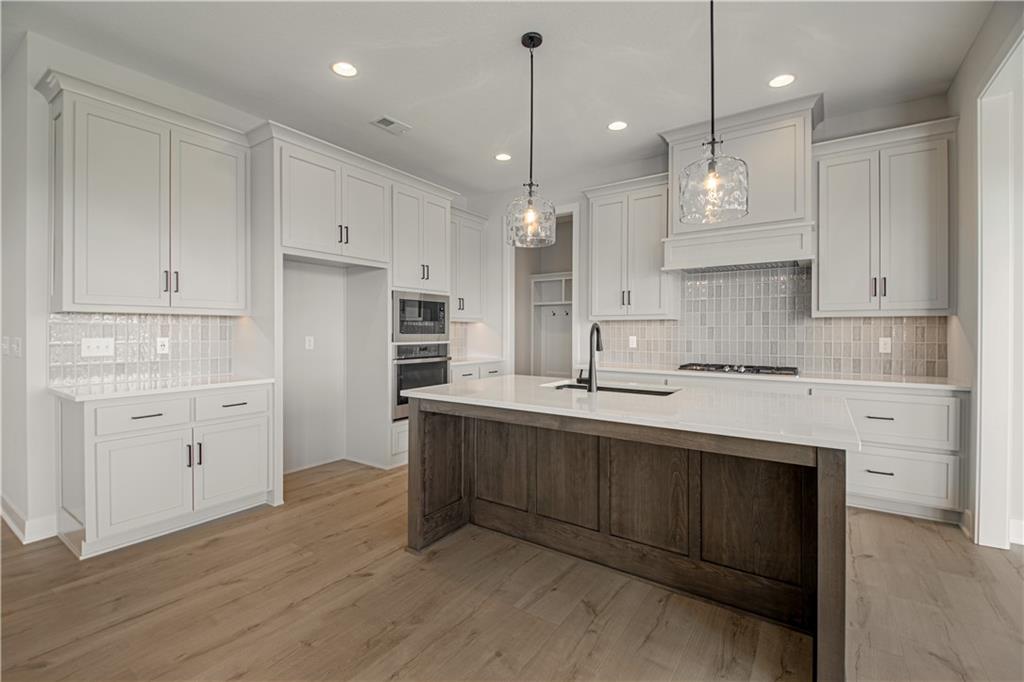 Move-in ready and beautifully designed, The Inglenook by Inspired Homes showcases a striking Craftsman-style exterior on a spacious, flat homesite—perfect for relaxing evenings or hosting BBQs on covered patio. Inside, you’ll find a thoughtfully designed layout with all the spaces you’ve been searching for. Just off the entry, a private home office with French glass doors and a walk-in closet offers both function and flexibility. The main floor features soaring 10-foot ceilings and oversized picture windows that fill the home with natural light. The kitchen is a true centerpiece, complete with high-end finishes including quartz countertops, a deluxe wood hood, built-in appliances with a gas cooktop, upgraded lighting, and under-cabinet illumination. An oversized walk-in pantry provides ample storage, and the kitchen flows seamlessly into the spacious great room, highlighted by custom built-ins, floating shelves, and a stunning stone fireplace. The breakfast area impresses with panoramic views and a custom X-beam ceiling detail. Car enthusiasts will appreciate the rare, oversized three-car garage—large enough to accommodate trucks or full-size SUVs with ease. Upstairs, generously sized bedrooms all include walk-in closets. The primary suite offers a luxurious bath and expansive closet, along with the convenience of second-floor laundry. The FINISHED BASEMENT adds even more living space, featuring a beautifully designed wet bar—perfect for entertaining. Located in the desirable Pryor Ridge community, residents enjoy exceptional amenities including a junior competition-sized pool, playground, basketball and pickleball courts, off-leash dog park, open green spaces, and scenic walking trails. All of this is just minutes from shopping, dining, groceries, entertainment, and easy highway access.