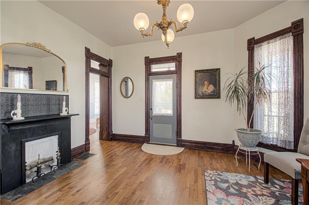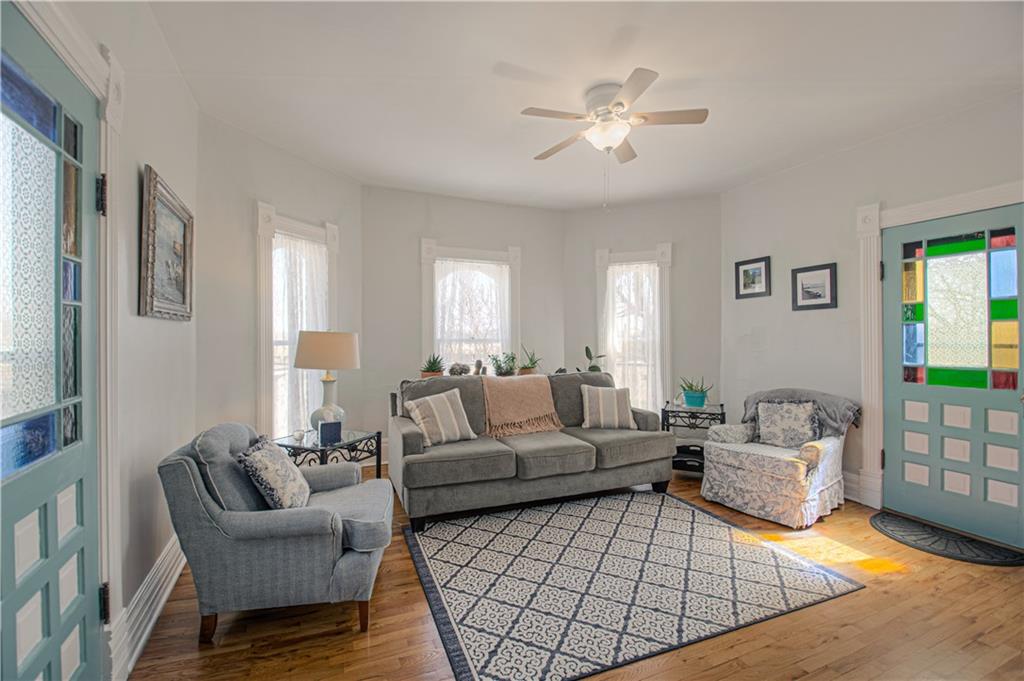 This historical three bedroom home in Liberty Missouri, listed as a national historic landmark, preserves original 1875 craftsmanship while offering modern kitchen, bath, and structural updates. At 225 Groom Street in Groom’s Addition, this rare Italianate residence features restored masonry, remodeled interiors, wraparound porches, and a three car garage with workshop space. This historic home offers a one and a half story layout with a light filled primary suite on the main level and two upstairs bedrooms with oak floors throughout. The east bedroom features stained glass doors that open to the upper wraparound porch, while the north bedroom showcases bay windows and generous natural light. Upstairs bathroom is newly remodeled with a tub and shower and antique fixtures. The foyer welcomes you with a polished wooden staircase, intricate woodwork, and detailed newel posts. The formal living room includes the original fireplace, antique gasolier chandelier, transom windows, and lower porch access. The formal dining room features bay windows, original fireplace, gasolier chandelier, transom window, and stained glass door to the porch. The remodeled kitchen includes stainless steel appliances, KraftMaid cabinetry, and granite countertops, plus a large entry area with laundry and a spacious walk in pantry. The main floor bath is remodeled with marble floors, stained glass, and shower. A separate family or rec room offers accent ceilings, bar, built in media cabinet, and direct access to a private patio. The basement is clean and dry with windows, original fireplace, storage space, and outside access. Exterior improvements include newly tuck pointed masonry, restored concrete and brick foundation, newly poured front and rear concrete driveways, new 6 foot privacy fence, landscaped grounds, and a three car garage with ample storage and workshop area.