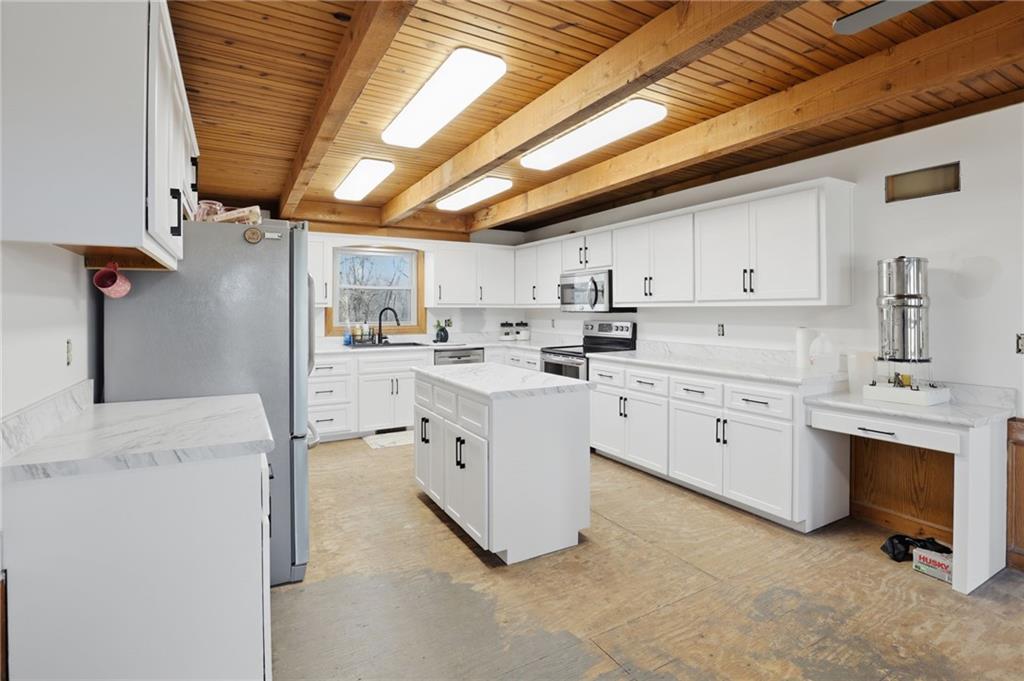 This acreage property just outside of Lawson offers approximately 25 acres of open ground and mature trees—creating the kind of setting that’s getting harder to find. What sets this one apart… the sellers have invested over $150,000 in recent improvements. Major updates include a new kitchen, updated bathrooms, new roof, new HVAC, new windows, All new doors, and a new cedar front porch—giving you a strong foundation of big-ticket items already handled. One of the standout features is the wood-burning fireplace with insert connected to the ductwork—providing an additional heat source throughout the home and the potential to reduce propane use during colder months. Some interior updates are still in progress, including portions of paint and trim. Flooring has not been fully completed, offering an opportunity for the next owner to select finishes based on their preference, depending on terms. Step outside and the possibilities really open up. A large barn (approximately 60x40) with three stalls, water, and electricity is ready for livestock or equipment. The separate shop (approximately 30x50) with water, heat, air conditioning, and concrete floors offers the kind of space that’s hard to find—ideal for projects, storage, or workspace. An additional shed provides even more room for tools or gear. The property also features fruit trees and three large raised garden beds, giving you the ability to grow your own produce, flowers, or simply enjoy the land in a more intentional way. Whether it’s working in the shop, spending time outdoors, tending the garden, or just having the space to breathe—this property delivers a lifestyle that’s difficult to match. Located in the well-regarded Lawson School District with convenient access to nearby highways.