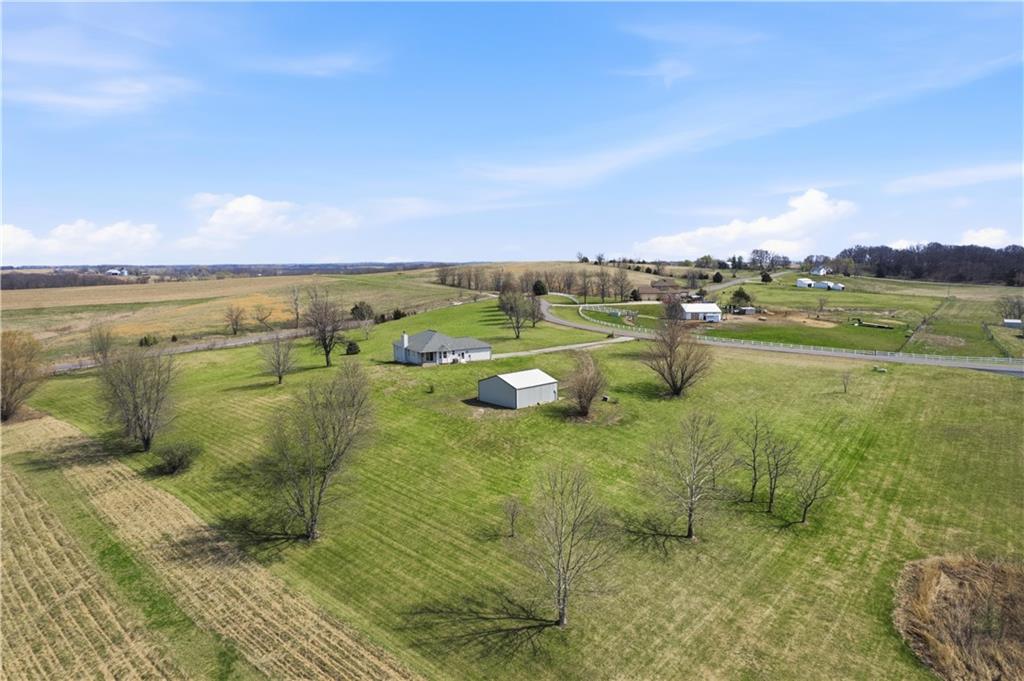 Have it all—easy country living with the convenience of true one-level living in this one-owner 3 bed, 2 bath ranch in Lakewood Country Estates. Surrounded by homes on acreage and ideally located just off Highway 29, this property offers both space and accessibility. New carpet and fresh interior paint enhance the inviting interior, where a vaulted living room with a wood-burning fireplace serves as the heart of the home. The unfinished walkout lower level—featuring 8’10” ceilings and stubbed for a bathroom—is ready for your vision and added living space. A 29x29 outbuilding with electricity provides the perfect setup for hobbies, storage, or recreational vehicles. Enjoy a prime location just 10 minutes from KCI Airport and 20 minutes to historic downtown Weston and Zona Rosa shopping. Experience the peace of country living without sacrificing convenience—this is a rare opportunity you won’t want to miss.