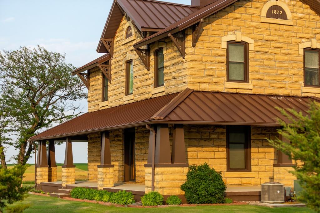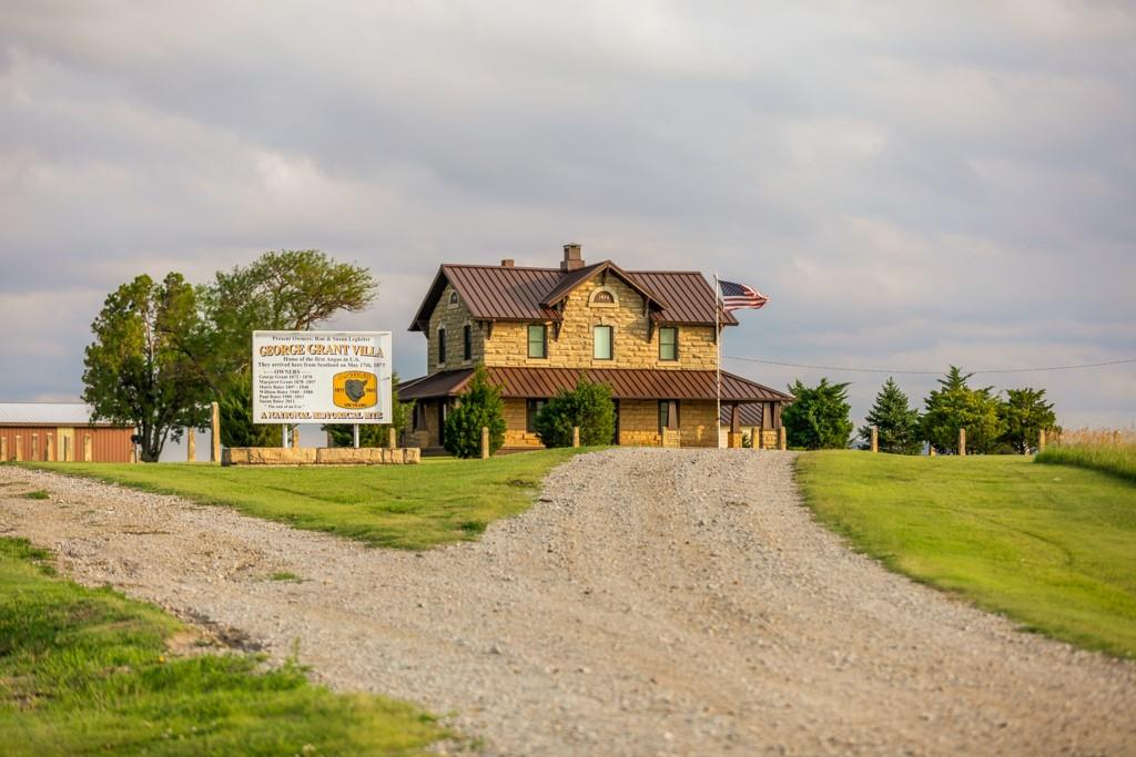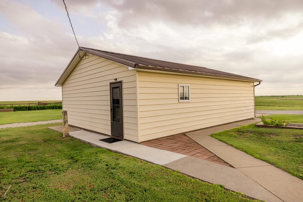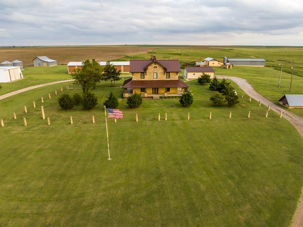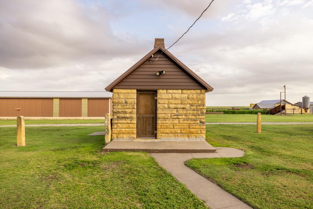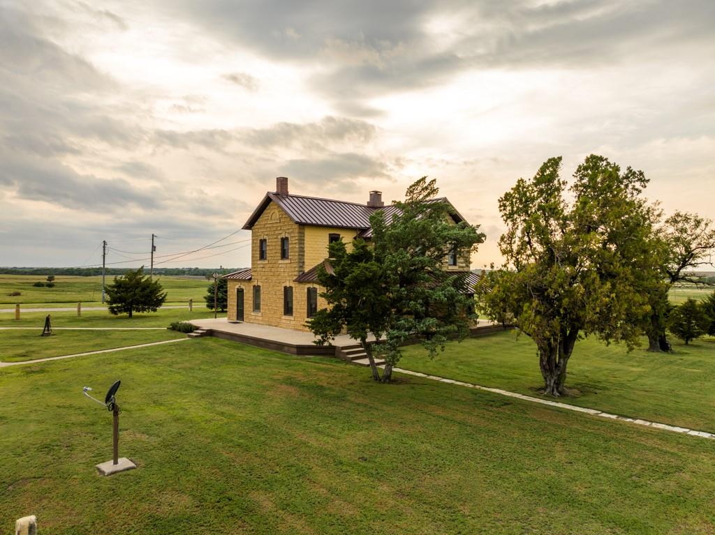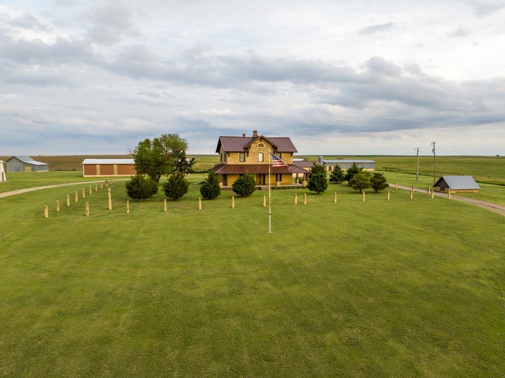 This historic, two-story home, is made entirely of limestone. It has been completely refurbished and includes the original tin ceilings, wood trim, doors, and gorgeous stair rail and banister. The home is equipped with all new double hung, double pane windows, central heat and air, fiber optic internet, and all your modern appliances. On the main floor, you have a spacious kitchen, living room, parlor, full bathroom/laundry room, and office. A gorgeous staircase leads you to the second floor where you’ll find 4 bedrooms. A big bathroom is located just off the master bedroom. There is a basement with shelving for storage. The property consists of 41.667 surveyed acres and includes a 40 X 90 steel equipment shed, a large 47 X 96 barn, an insulated two-car garage, 2 large grain bins, a chicken coop, a large 90 foot loafing shed, a dairy barn, and many other multi-use outbuildings. A steel corral system is located outside of the barn, and there’s new barbed wire fencing throughout the property. While the property is a National Historic Site, there are no restrictions to what can be done. There’s plenty of room to add additional storage sheds, horse arenas and boarding facilities, additional living facilities and bunk houses, or other livestock buildings, as you see fit. It’s the perfect hobby farm to raise your family, with room for all your 4H projects. There's also room for a large garden. It also has a lot of investment upside, whether you’re looking to start a children’s camp, expand your business with plenty of room for equipment, or start a horse boarding, riding, or equine therapy facility. You could also run your own bed and breakfast. The existing buildings and additional room would accommodate any of these adventures and many more. The farm is conveniently located just a short drive from Hays, Kansas, where you can find many stores and restaurants, a large hospital, Fort Hays State University, and just about anything else you’ll need. .