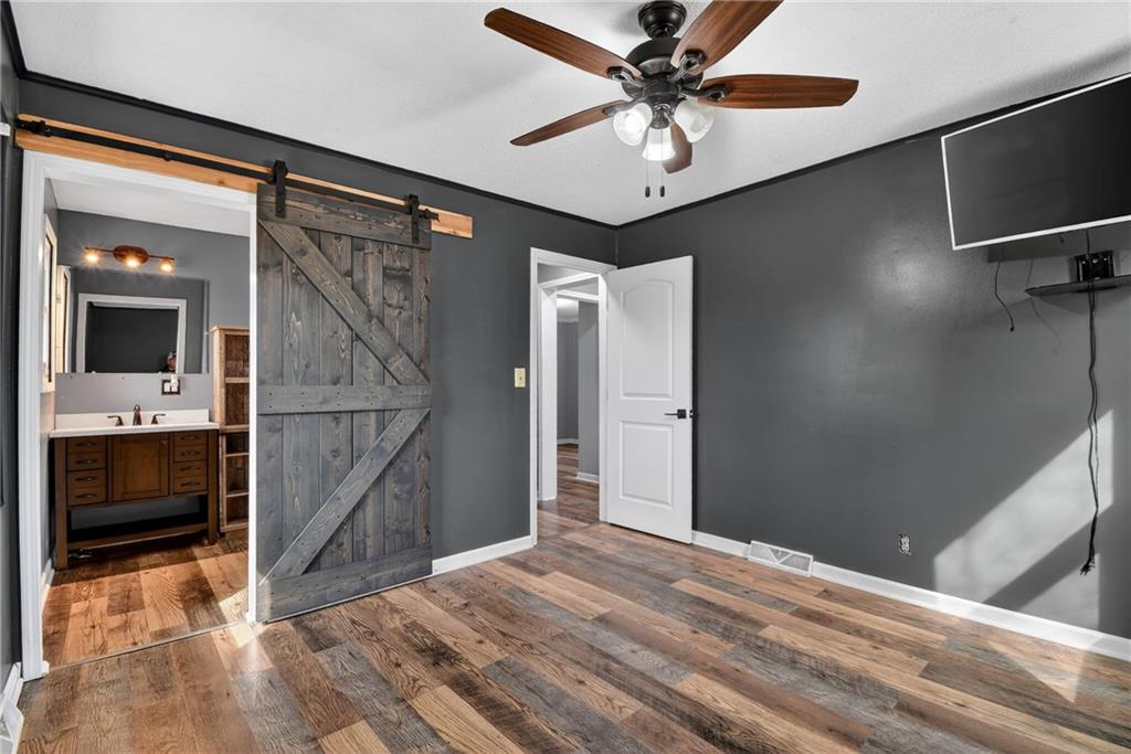 Beautiful home situated on 3.1 acres with an impressive 36x30 shop, offering the perfect blend of space, function, and updates! You’ll love the open floor plan with the primary suite conveniently located on the main level. The home is filled with natural light and features new flooring, fresh paint, and updated windows throughout, giving it a clean, move-in ready feel. The spacious kitchen includes an island, abundant counter space, and beautiful cabinets. The dining area opens to the patio with sliding doors that have built-in blinds. Downstairs, you’ll find two additional non-conforming rooms that offer great flexibility—perfect for bedrooms, a home office, workout space, or rec room. This home also offers major updates already completed, including a new HVAC system, new septic system, new flooring, and a brand new large patio—plus all appliances stay! Store your equipment or toys in the 36x30 shop, complete with 200 amp electrical, lighting, propane heat, a 6-inch concrete floor, and full insulation (including the garage door)—ideal for hobbies, business use, or extra storage. Located with easy access to I-49 and 291, you get the feel of country living with convenient access to the city. This one truly has it all—acreage, updates, and a versatile setup. Come take a look!