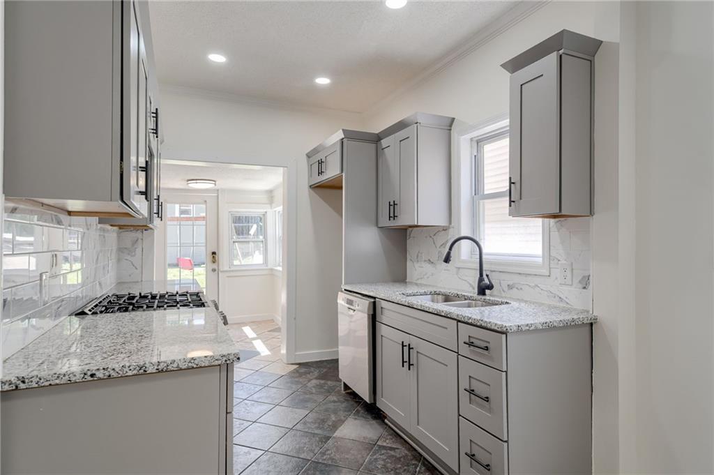 Step into this beautifully remodeled 2-bedroom, 1-bathroom bungalow—perfect for first-time buyers or those seeking easy, stylish living. The spacious living room welcomes you with brand-new flooring and abundant natural light. Enjoy cooking in the updated kitchen, featuring new appliances and a charming layout that opens to a dedicated dining room, ideal for hosting meals or quiet dinners at home. Two cozy bedrooms and a completely renovated bathroom provide comfort and functionality. Relax on the inviting front porch—perfect for watching the sunset and unwinding after a long day. This turnkey home blends modern updates with classic charm. Come see it today!