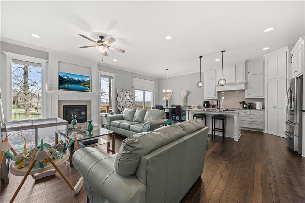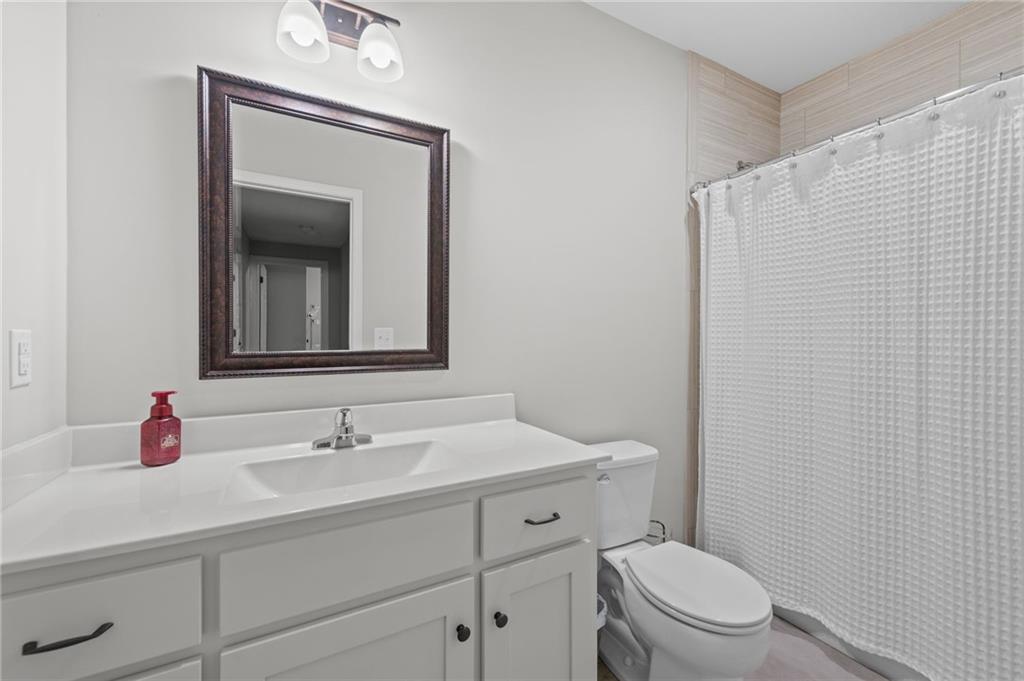 Welcome to this inviting reverse 1.5-story home that offers comfortable living, thoughtful design, and a hard-to-beat location. The main level features an open and functional layout with a spacious kitchen complete with granite countertops, a pantry, and a center island with a sink, making meal prep and entertaining easy. The kitchen flows seamlessly into the breakfast area and great room, where a cozy fireplace is framed by large windows on each side, filling the space with natural light and backyard views. The primary suite provides a relaxing retreat with a bathroom that includes dual sinks, a soaking tub, a separate toilet room, and a large walk-in closet with built-in shelving. Also on the main level is a second bedroom, a full bathroom with shower, and a laundry room with cabinet storage for added convenience. The finished lower level expands the living space with a large family room featuring a big window for natural light, along with third and fourth bedrooms and a full bathroom with a shower over the tub, offering plenty of room for guests, hobbies, or a home office. Step outside to enjoy the deck overlooking a treed, partially fenced backyard, providing a peaceful setting for relaxing or entertaining. Located in a prime area with easy access to downtown and the airport, this home combines space, comfort, and convenience.