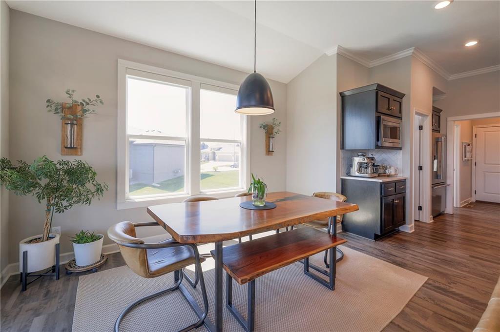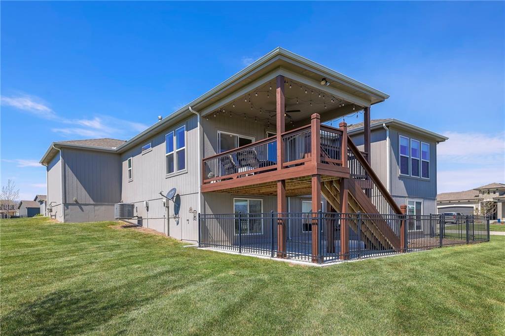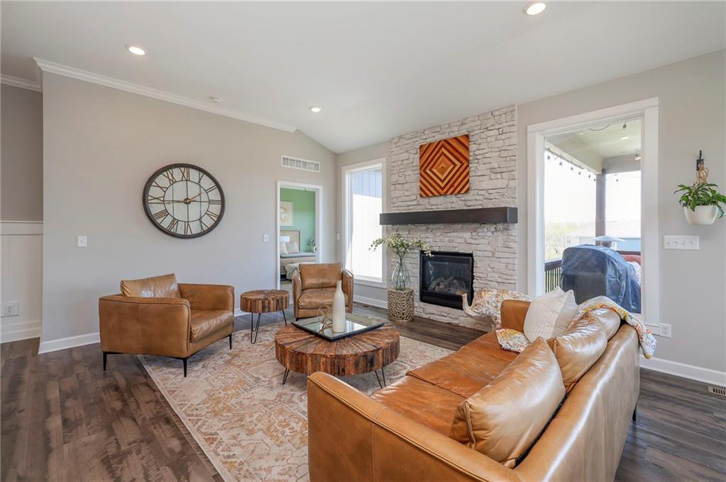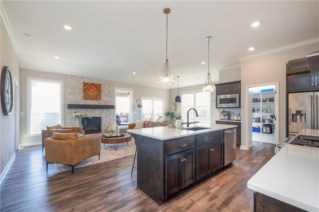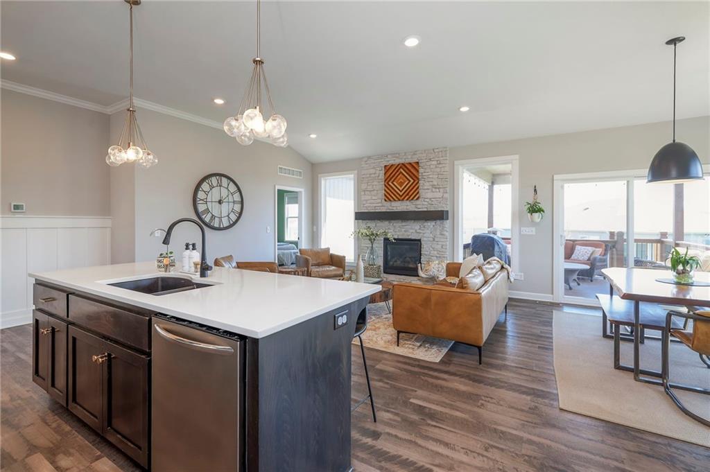 Welcome to effortless, care-free living in this beautifully designed, move-in ready home perfectly situated on a premium corner lot. From the moment you step inside, you'll appreciate the modern open layout, enhanced by engineered hardwood floors and wainscoting entry, upgraded finishes and fresh interior paint. The designer kitchen is truly the heart of the home, featuring custom cabinetry, a large center island, walk-in pantry, gas range and Frigidaire stainless steel appliances-all included. A charming coffee bar adds both function and style, making mornings something to look forward to. The spacious primary suite offers a relaxing retreat with a tray ceiling and large windows that fill the room with natural light, along with a custom tiled shower for a spa-like experience. Additional thoughtful touches include a stylish barn door, ceiling fans, faux wood blinds, upgraded front door, and a wrought iron fence. Cozy up by the gas fireplace with floor to ceiling stacked stone or step outside to enjoy the extra large covered composite covered 13' x 13' deck-perfect for entertaining or unwinding. The finished lower level, daylight basement, provides additional living space, an additional bedroom and full bath with plenty of unfinished storage space to do with what you would like, while the garage offers even extra storage for convenience. This home also includes an active radon mitigation system and a kitchen sink water filtration system for added peace of mind. Enjoy maintenance provided living with lawn care and snow removal for a mandatory $150/month. Community amenities are second to none, featuring a clubhouse, pool, playground, party room, and scenic walking trails. This home truly has it all-style, comfort, and convenience-ready for you to move right in and enjoy!! Why pay for new construction when you can everything you want right here. It's just waiting for you!
