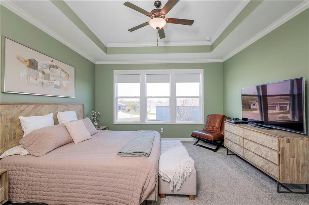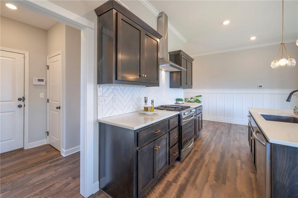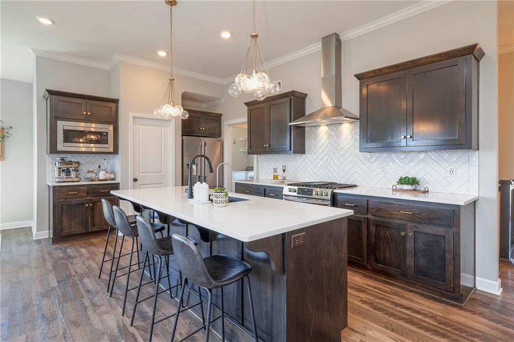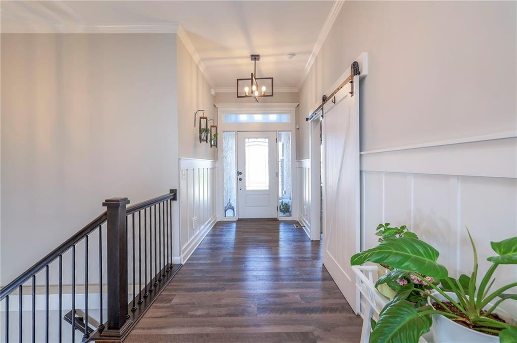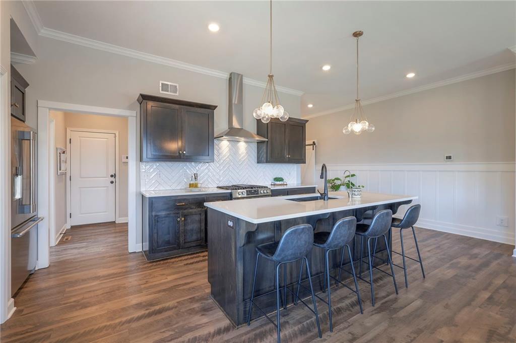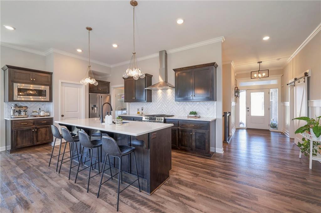 Welcome to effortless, care-free living in this beautifully designed, move-in ready home perfectly situated on a premium corner lot. From the moment you step inside, you'll appreciate the modern open layout, enhanced by engineered hardwood floors and wainscoting entry, upgraded finishes and fresh interior paint. The designer kitchen is truly the heart of the home, featuring custom cabinetry, a large center island, walk-in pantry, gas range and Frigidaire stainless steel appliances-all included. A charming coffee bar adds both function and style, making mornings something to look forward to. The spacious primary suite offers a relaxing retreat with a tray ceiling and large windows that fill the room with natural light, along with a custom tiled shower for a spa-like experience. Additional thoughtful touches include a stylish barn door, ceiling fans, faux wood blinds, upgraded front door, and a wrought iron fence. Cozy up by the gas fireplace with floor to ceiling stacked stone or step outside to enjoy the extra large covered composite covered 13' x 13' deck-perfect for entertaining or unwinding. The finished lower level, daylight basement, provides additional living space, an additional bedroom and full bath with plenty of unfinished storage space to do with what you would like, while the garage offers even extra storage for convenience. This home also includes an active radon mitigation system and a kitchen sink water filtration system for added peace of mind. Enjoy maintenance provided living with lawn care and snow removal for a mandatory $150/month. Community amenities are second to none, featuring a clubhouse, pool, playground, party room, and scenic walking trails. This home truly has it all-style, comfort, and convenience-ready for you to move right in and enjoy!! Why pay for new construction when you can everything you want right here. It's just waiting for you!