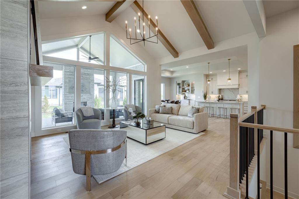 Experience Luxury Living in the Avala Expanded in Leawood's most popular community, Aventino! Step into the stunning Avala Expanded on Level Lot 14, built by JS Robinson Fine Homes, and prepare to be amazed! Designed with elegance and comfort in mind, this exceptional home features soaring vaulted ceilings with stained wood beams, expansive windows that flood the space with natural light, and an inviting open-concept layout that seamlessly connects the living, kitchen, and dining areas. Extend your living outdoors to the vaulted covered lanai, where a striking fireplace and generous patio space create the perfect setting for relaxation or entertaining. With the backyard just a step down from the lanai, you’ll enjoy effortless indoor-outdoor flow.The chef-inspired kitchen is beautifully appointed with ceiling-height cabinetry, a large island, a built-in buffet, and a discreet prep kitchen with sink and pantry shelving—keeping everything organized and out of sight. Designed for convenience, the home offers two bedrooms on the main level and two additional bedrooms in the lower level. The lower level is an entertainer’s dream, featuring a walk-up bar, media space, and a private workout area. Nestled in the heart of Leawood’s premier community, AVENTINO, this maintenance-provided single-family home offers the perfect blend of luxury and lifestyle. THIS HOME IS AT DRYWALL, ESTIMATED TO BE COMPLETE IN AUGUST.