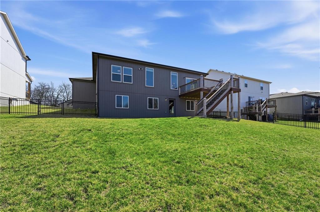 Welcome to 1024 Branchwood Lane in Raymore, a newly constructed home offering a clean, modern feel with thoughtful design and room to grow. This 2-bedroom, 2-bath layout is ideal for those seeking main-level living without giving up future potential. The primary suite stands out with a custom-designed closet that adds both style and everyday functionality. The second bedroom and full bath provide flexibility for guests, a home office, or additional living needs. One of the most valuable features of this home is the unfinished walkout basement. With space to accommodate two additional bedrooms and another full bathroom, it gives you the opportunity to expand your living space over time while adding long-term value. Step outside to a fenced backyard that backs directly to the Creekmoor Golf Course, offering peaceful fairway views and a setting that feels both open and private. Whether you are enjoying a quiet morning or winding down in the evening, the backdrop is hard to beat. This is a rare opportunity to own new construction in a golf course community with the flexibility to grow into the home as your needs change.