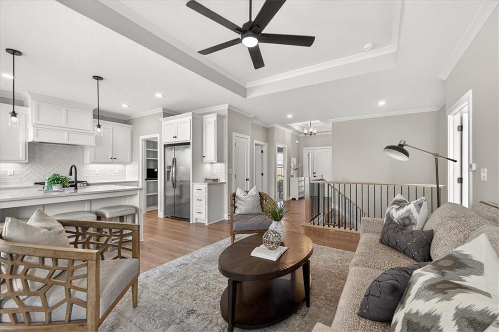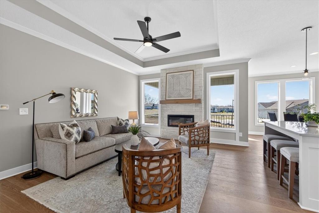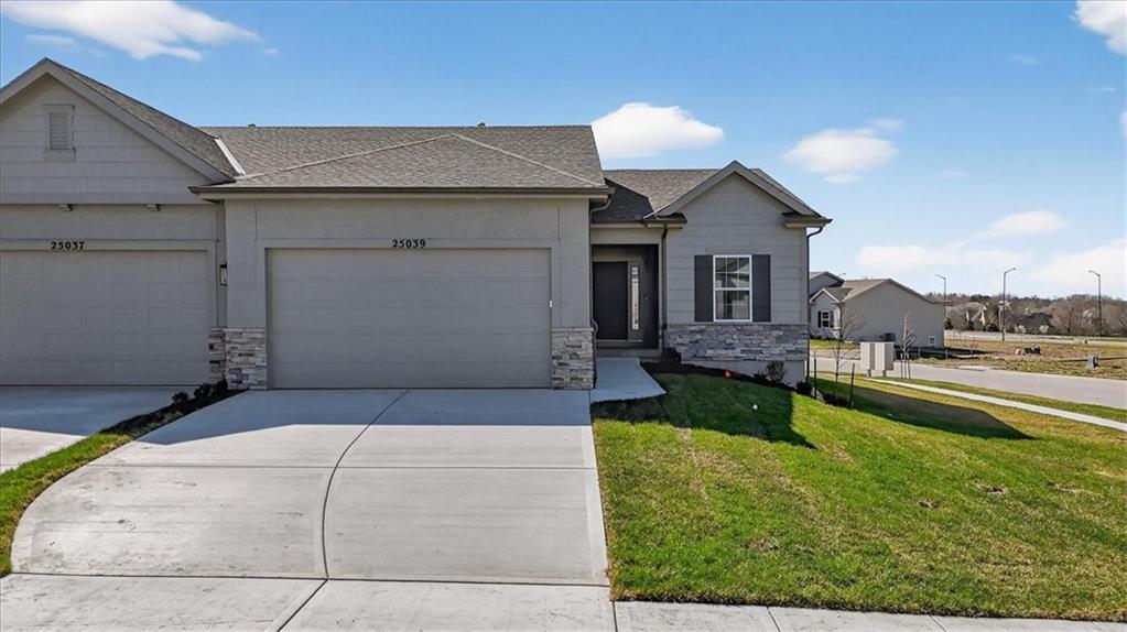 NEW MODEL HOME - NOT FOR SALE. Welcome to the Lakewood by Lambie Homes, a beautifully designed reverse 1.5-story floor plan located in the maintenance-provided Mize Hill community in Lenexa. This model showcases mid-level interior finishes and thoughtful design throughout, offering 4 bedrooms, 3 bathrooms, and a functional layout ideal for everyday living and entertaining.The main level features an open-concept design with a spacious great room, highlighted by a floor-to-ceiling fireplace and abundant natural light. The kitchen includes a wood hood vent, quartz countertops, walk-in pantry, and a large center island, seamlessly connecting to the dining area and covered deck, perfect for indoor-outdoor living.This home is currently serving as the Mize Hill model home and is not available for purchase. It is available to tour to experience the Lakewood floor plan, available finishes, and overall lifestyle offered within the community. Located near Cedar Station Park, Mize Lake, and with convenient access to K-10 and Prairie Star Parkway, Mize Hill offers low-maintenance living with planned amenities including walking trails and a future community pool. Professional photos coming 04/01/2026