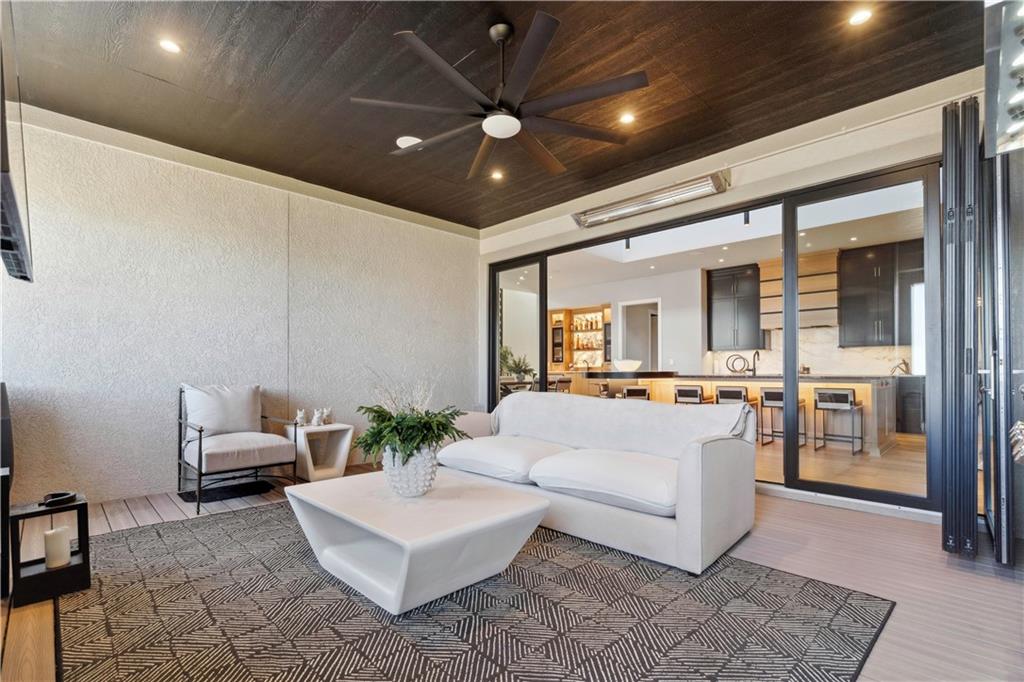 This one-of-a-kind Don Julian home mixes true modern esthetics with the comfort of everyday living. Thoughtfully designed throughout, from the custom 3-story floating staircase to the luxurious backlit quartzite stone, this home has the “Wow factor” you’ve been looking for! The two-story great room features floor-to-ceiling windows and a custom rolled metal fireplace, complete with built-ins and floating shelves. The stunning main level bar showcases European style cabinet doors and backlit stone. The spacious main kitchen boasts granite countertops, a paneled refrigerator, custom backlit cabinetry, and an induction cooktop. The secondary kitchen offers custom cabinetry with built-in storage, wine refrigerator, bar, oven, ice maker, dishwasher, and refrigerator. The primary bedroom and luxurious bathroom suite feature a freestanding tub, pebble stone shower floor, custom cabinetry, and quartz countertops. Panoramic doors extend to the private outdoor lanai, an ideal space for entertaining in all seasons, complete with a built-in grill, fireplace, and refrigerator. The main level also includes an office, spacious pantry, laundry room, and a beautifully designed mudroom. Off the loft upstairs, you’ll find each secondary bedroom features a private bathroom, crafted with meticulous attention to detail. The expansive walkout lower level offers ample space for additional finishing if desired. The owner has made extensive upgrades, including custom automatic blinds, luxurious custom closet design in the primary suite, and durable epoxy garage floors. Additional enhancements include an exterior door from the garage, custom garage cabinetry and mini split HVAC, fencing, and professional landscaping. The newly added outdoor patio space is perfect for entertaining, complete with a bar and built-in kitchen, complete with a pizza oven, cooktop and refrigerator! Plus, the home is equipped with whole-home automation for ultimate convenience and modern living.
