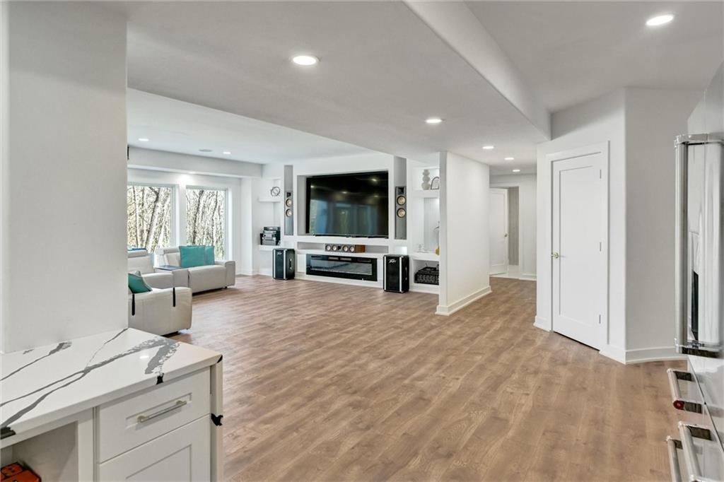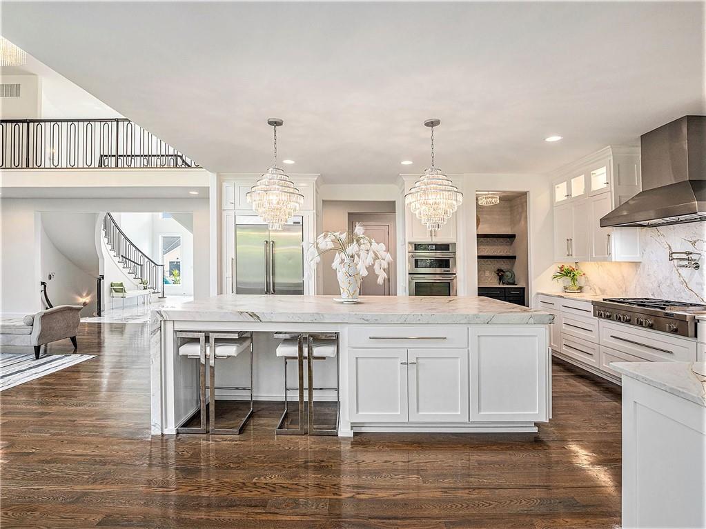 STUNNING. ELEGANT. EXTRAORDINARY. This nearly new Timber Rock Community showpiece is a true custom luxury build! A grand dual staircase and 3-tier custom crystal chandelier set the tone the moment you walk in, leading into a modern, light-filled living area with an 8-by-18-foot porcelain marble feature wall and a breathtaking 2-tier crystal chandelier. The chef-inspired kitchen is an entertainer’s dream, with a 5x10 leathered granite island, JennAir Pro appliances, a separate prep kitchen, and a huge pantry flowing seamlessly to an oversized crystal-lit dining area and covered lanai with a stone fireplace—perfect for unforgettable dinner parties, game days, and holidays. Your main-floor primary retreat feels like a five-star spa, offering an indulgent bath with oversized dual shower, soaking tub, and an expansive custom closet. Exquisite tilework, custom dual vanities, 5-foot circular mirrors, and crystal chandeliers create a jaw-dropping sanctuary, completed by a large 3-tier closet with two built-in chests. Upstairs, three spacious bedrooms with designer accent wallpaper—each with its own ensuite bath—ensure every guest or family member enjoys a private, boutique-hotel experience. The newly finished lower level is an entertainer’s paradise, with a wide-open living area, dedicated dining space, and a wet bar, all illuminated by a wall of windows overlooking green space; two extra-large bedrooms (ideal for an exercise room or private office) share a beautifully tiled full bath, and a generous wine room becomes the centerpiece for tastings and celebrations. Sliding doors lead to a large patio and lush green space expanding your living area outdoors, ideal for morning coffee and casual evenings. An oversized angled 4-car garage, large mudroom, and extra-spacious laundry loaded with custom cabinets and counters provide the everyday functionality that makes luxury living effortless. Buyer’s agent to verify square footage, schools, and taxes.