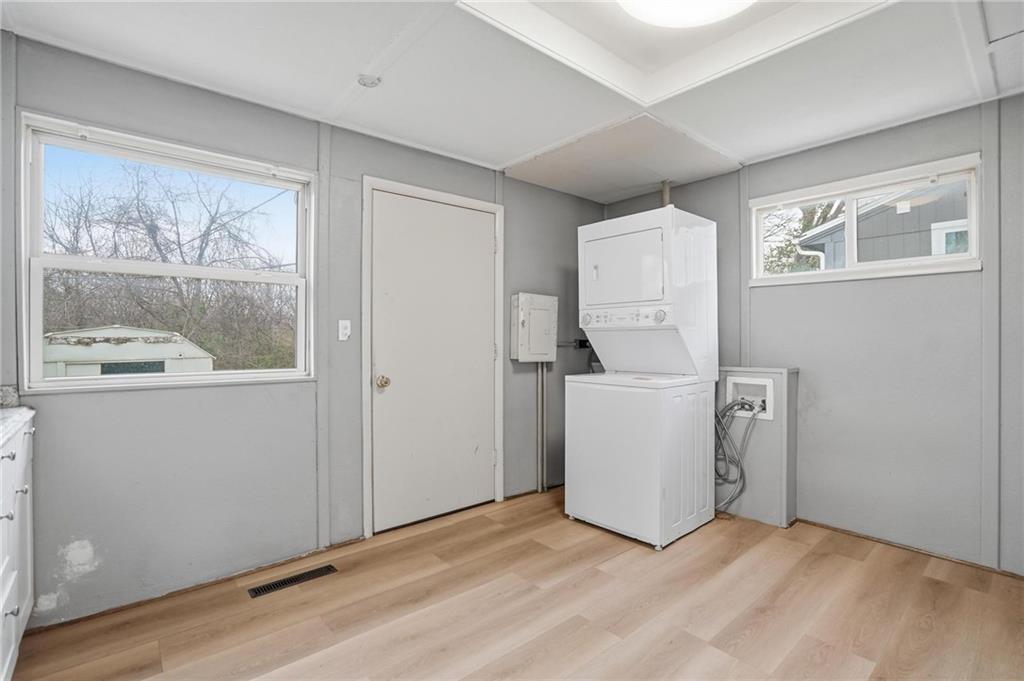 Cozy Northland 2-bedroom ranch perfect for owner-occupant or investor under $200K. Low-maintenance vinyl siding, vinyl windows, and newer AC keep costs down, while fresh interior paint and new bathroom flooring make it move-in ready. Efficient layout with eat-in kitchen, wood floors, and plenty of light. Fenced yard with utility shed and off-street parking. Convenient North Kansas City location close to shopping and highways with no HOA, city utilities, and solid rental history.