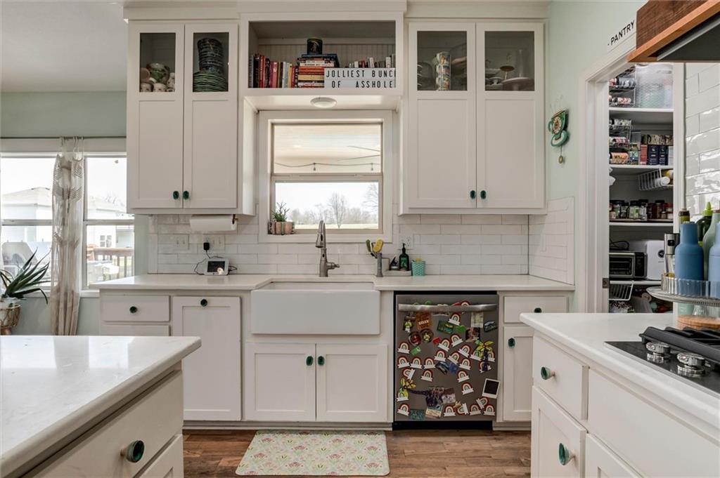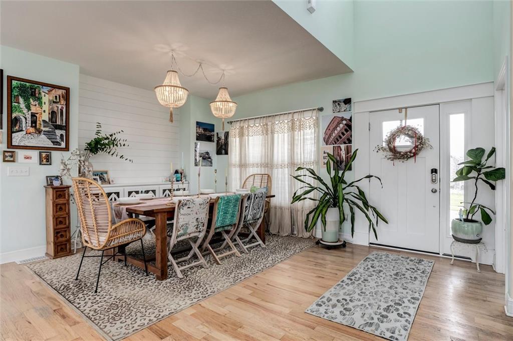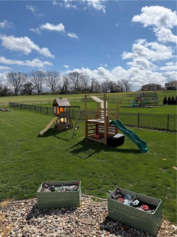 You will know you are home from the moment you pull up and see the gingerbread features on the front including shake shingles and a huge flower box and porch for sitting. Walk inside and you will be blown away by the open floor plan, gorgeous natural light and breathtaking view of the large lot and open field behind. The half acre lot features two large playgrounds, a trampoline, a large deck and patio and a huge garden for all your homesteading needs. Back inside this home on the main level you will find a cozy home office, bar and dining room and an expansive kitchen island sure to make any home cook or entertainer happy.