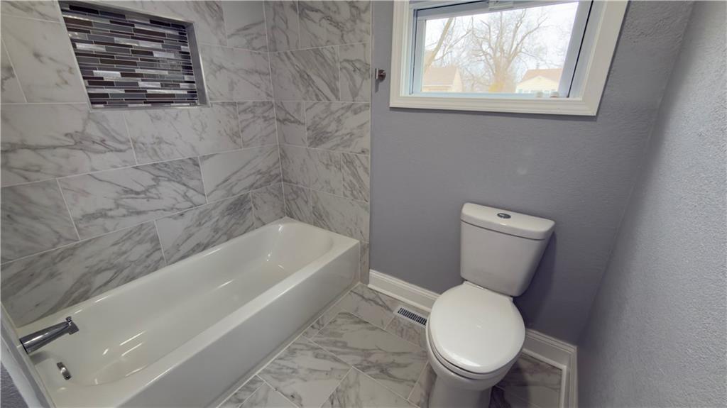 Completely renovated and move-in ready, this home features a clean, modern design with thoughtful finishes throughout. The exterior offers fresh, light-colored siding contrasted by black trim, a matching black front door, and a black garage door, creating a sharp, contemporary look. A newly painted concrete front porch provides a functional and inviting entry space. Inside, the home showcases durable wood-look flooring with warm natural tones that pair well with a variety of furniture styles—from modern and minimalist to traditional pieces—making it easy to personalize each room. The walls are finished in a soft gray with crisp white trim, creating a neutral palette that enhances natural light and gives the space an open, airy feel. The living area flows seamlessly into the kitchen, where you’ll find white cabinetry, modern hardware, and a clean layout designed for both functionality and everyday living. A stainless steel side-by-side refrigerator is already in place, complemented by a stainless steel dishwasher and coordinating finishes that give the kitchen a cohesive, updated look. Bedrooms continue the same flooring and color scheme, each equipped with updated ceiling fans featuring dark blades and integrated lighting, adding both style and comfort. The consistent finishes throughout the home create a unified, polished feel. The bathroom has been fully updated with large-format tile featuring a marble-inspired design, extending from the tub surround to the flooring for a sleek, cohesive appearance. A built-in niche with accent tile adds both function and visual interest. The vanity includes a clean white countertop, modern faucet, and updated lighting fixture above a framed mirror, completing the space with a fresh, contemporary touch. Additional upgrades include updated windows that bring in natural light, modern lighting throughout, and clean, well-executed finishes that make this home truly turnkey. Seller licensed in KS and MO.