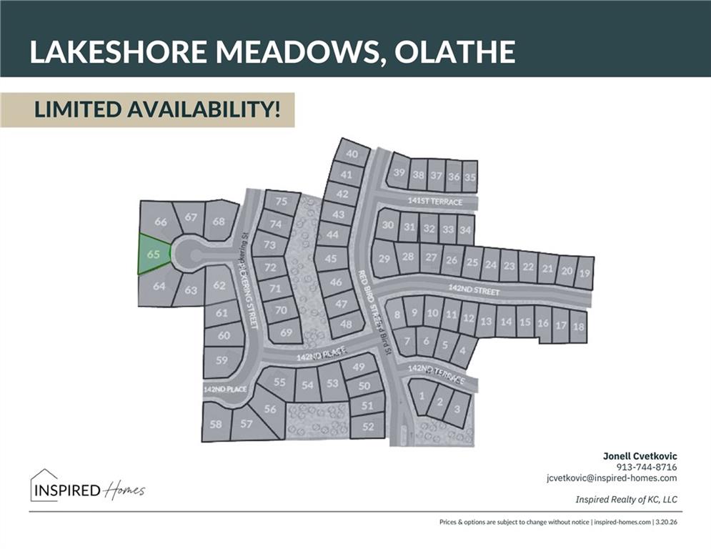 Old 56 to Parker. Right on Parker and quick left on Dennis Ave. Approx 4-5 miles on Dennis, which turns into 143rd St when you go up the hill. Community is ahead on the right at Red Bird Street. Turn Right onto Red Bird Street. Turn Left onto W 142nd Pl. Turn Right onto S. Pickering St follow to cul-de-sace; Turn Left; Lot is at end of cul-de-sac