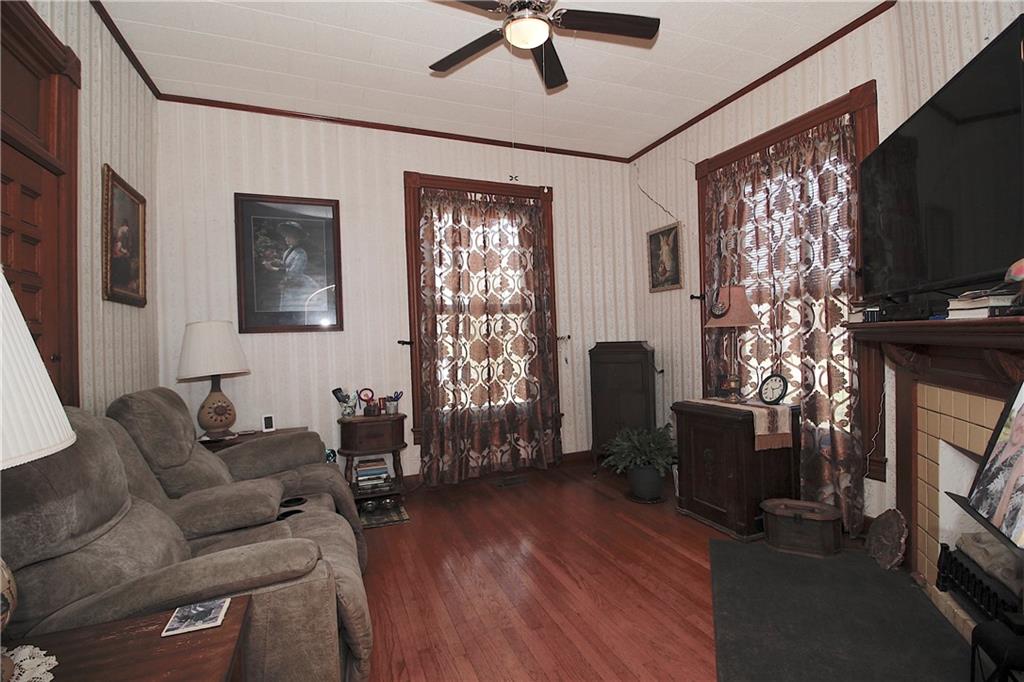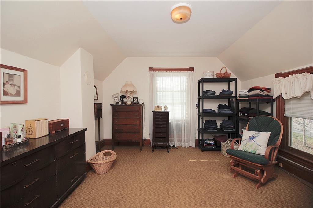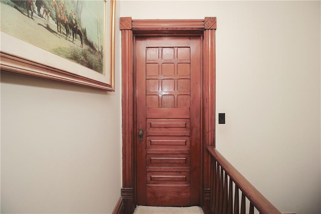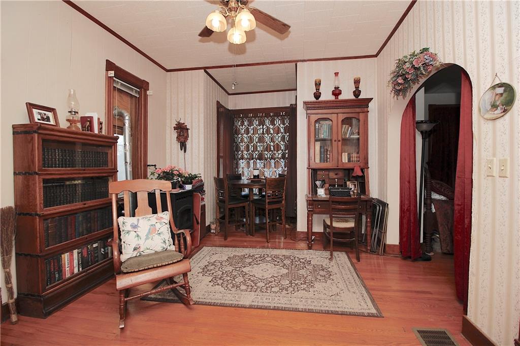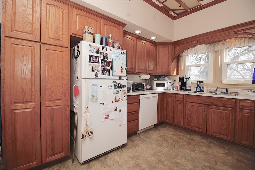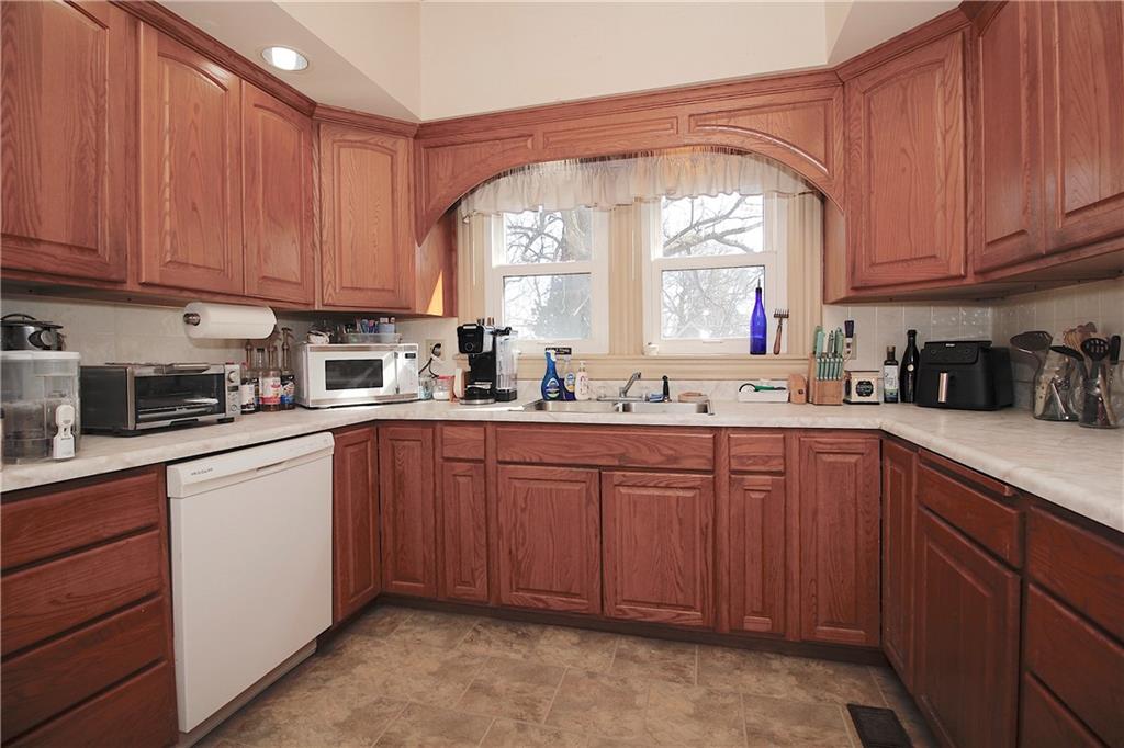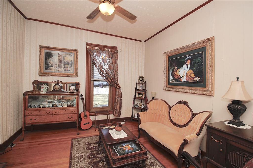 This remarkable home has some gorgeous woodwork including hardwood floors, a beautifully detailed staircase and unique solid wood doors! Unique round window. Roof and guttering were NEW in 2025. NEW sump pump. Kitchen was remodeled in 2001. There's a 2nd kitchen upstairs because this used to be a duplex a long time ago. Choose where you want to relax and unwind... the deck, patio or porch in the back or the front porch. Fenced yard for your furbabies! Detached 352 square foot 1-car garage has a concrete floor and electric. Just half a block away from the Prairie Spirit walking/biking trail. More info including photos added later today.