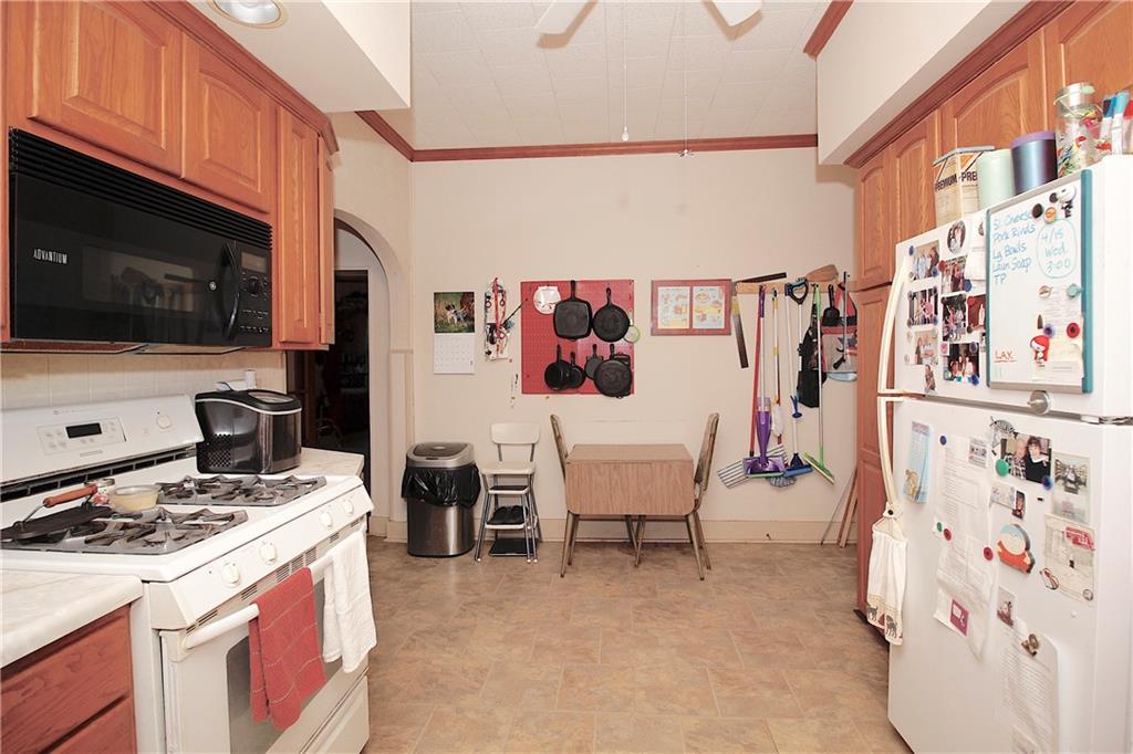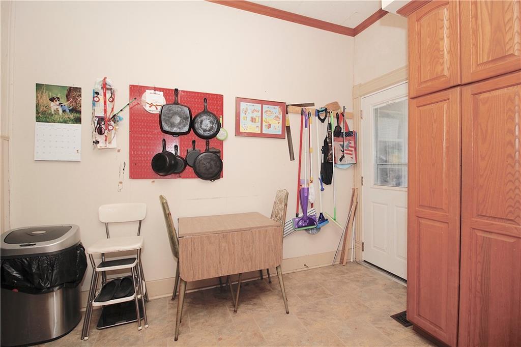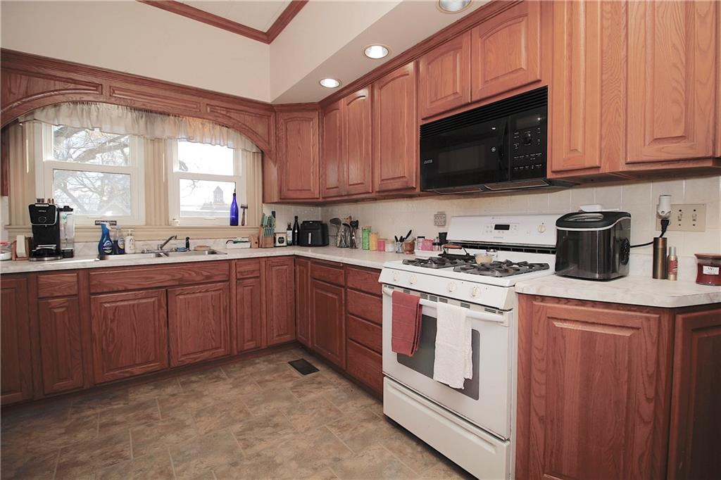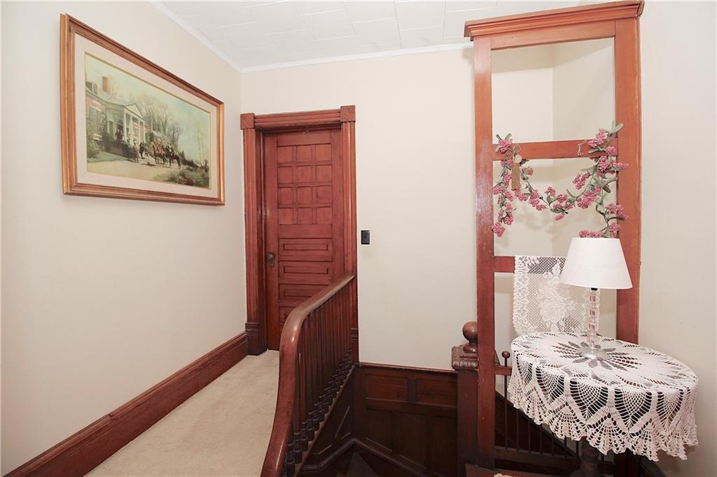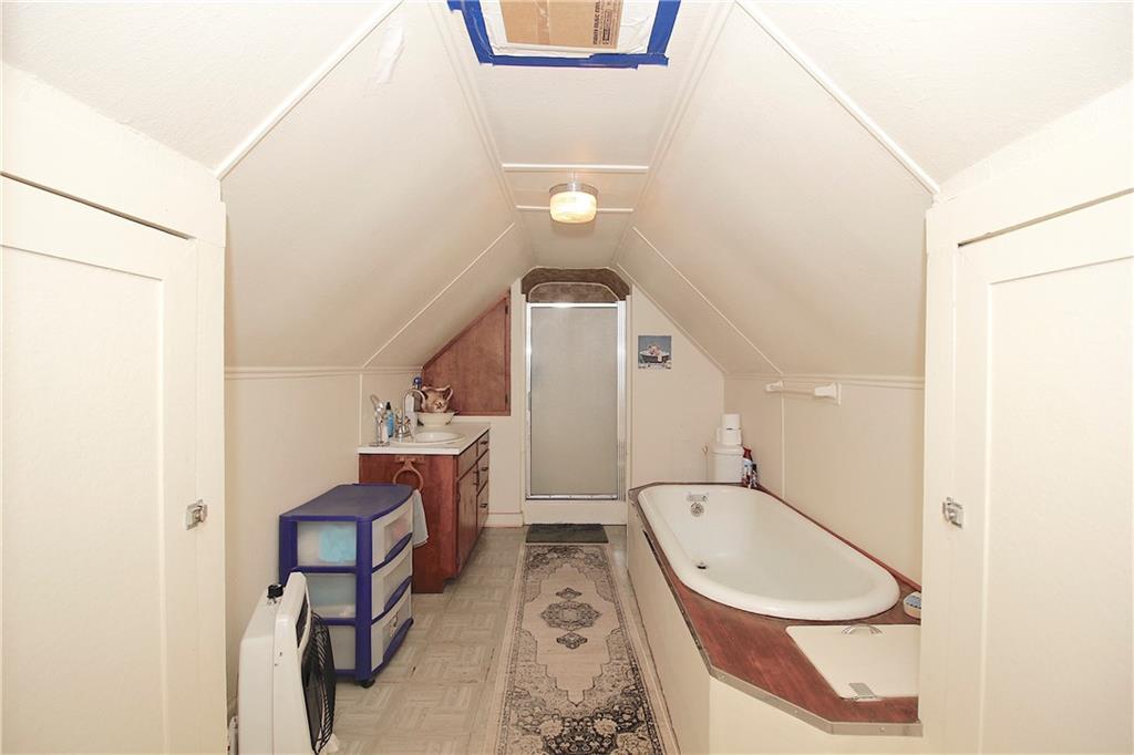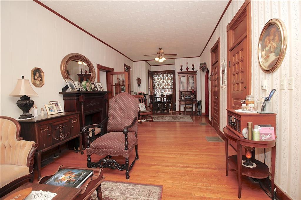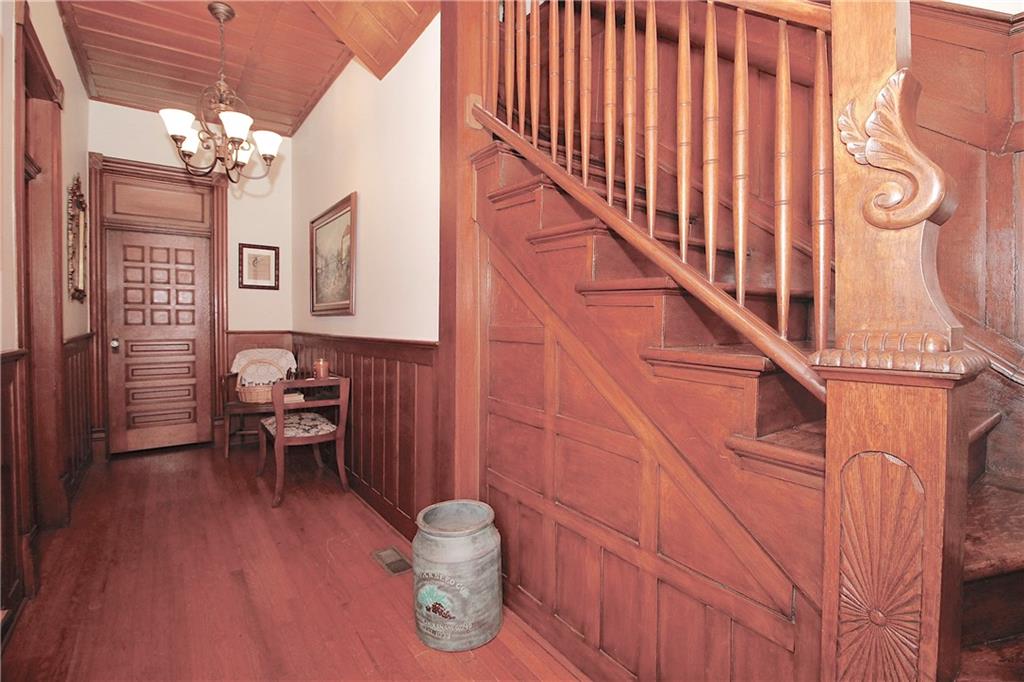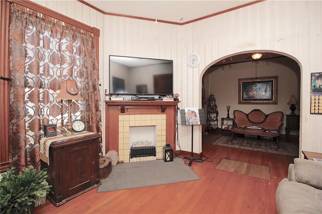 This remarkable home has some gorgeous woodwork including hardwood floors, a beautifully detailed staircase and unique solid wood doors! Unique round window. Roof and guttering were NEW in 2025. NEW sump pump. Kitchen was remodeled in 2001. There's a 2nd kitchen upstairs because this used to be a duplex a long time ago. Choose where you want to relax and unwind... the deck, patio or porch in the back or the front porch. Fenced yard for your furbabies! Detached 352 square foot 1-car garage has a concrete floor and electric. Just half a block away from the Prairie Spirit walking/biking trail. More info including photos added later today.