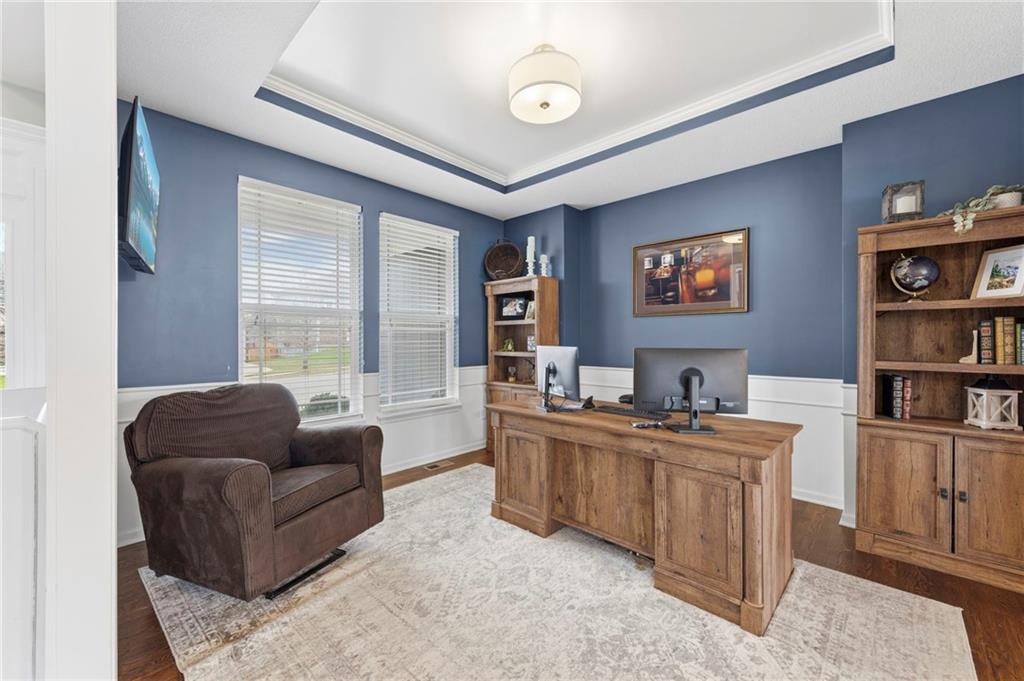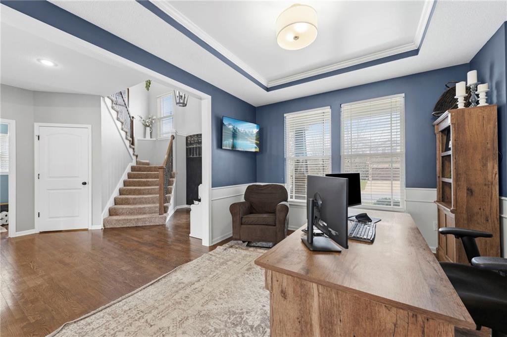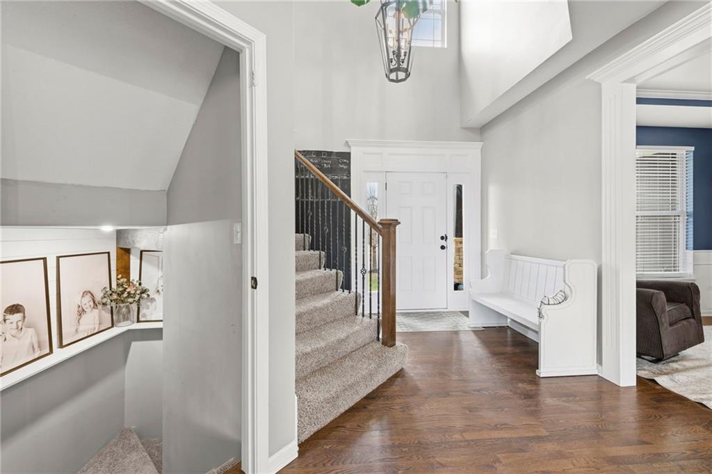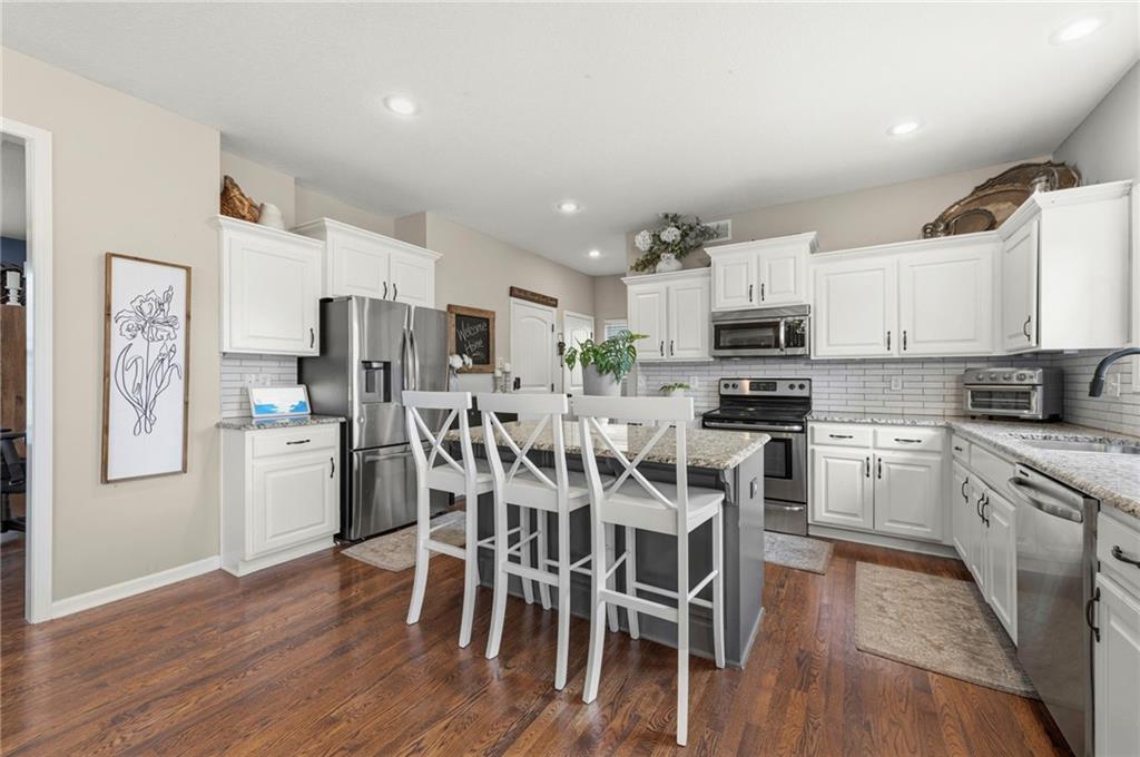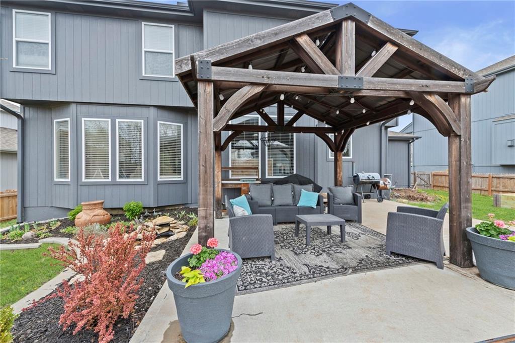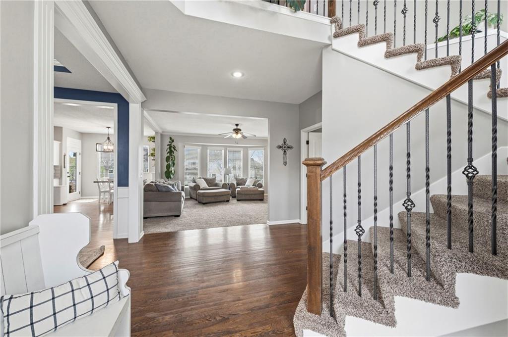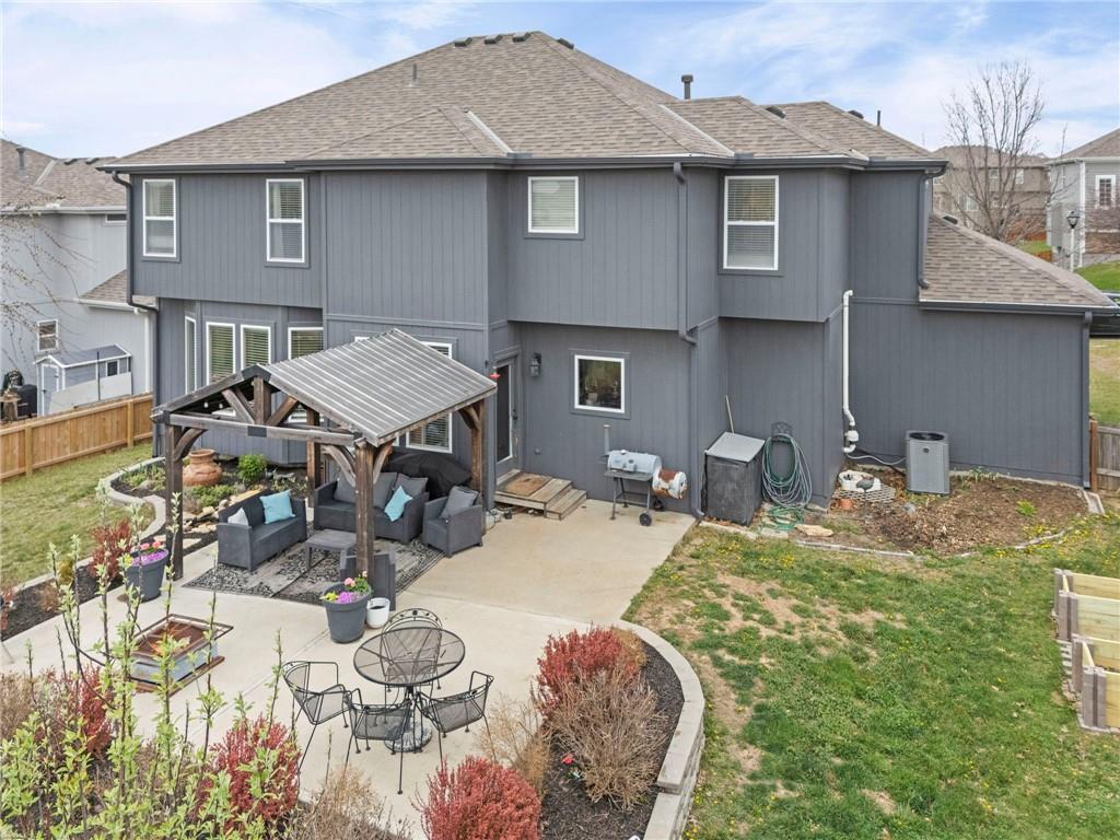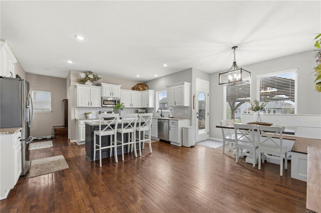 Why wait for a new build and pay more to get less? This 4-bedroom, 3.5-bath, 3-car garage home offers a spacious, open layout with ideal updates and is ready now! The beautifully updated kitchen features hardwood flooring, stainless steel appliances, granite countertops, an eat-in area with custom, built-in seating and table, and a large walk-in pantry. Just off the kitchen, enjoy a bright living room with fireplace and custom built-ins, plus a versatile dining room or office and convenient half bath. Upstairs, you’ll find the incredible primary suite featuring large ensuite and massive closet. Down the hall there are three additional bedrooms, a jack-and-jill bath, an additional full bath, and the convenience of second-floor laundry! The finished basement provides excellent additional living space with a bar area, under-stair play nook, a non-conforming bedroom or flex room, and plenty of storage space w/egress window. Step outside to a level backyard with mature landscaping and plenty of room for entertaining. Located just a short walk from neighborhood amenities including the pool, park, walking trails, and Lake Olathe. To make this even better, the roof and mechanicals are nearly new as well! A true full-package home—don’t miss it! Be sure to check out the virtual tour to fully appreciate the layout and space. Schedule your showing today.