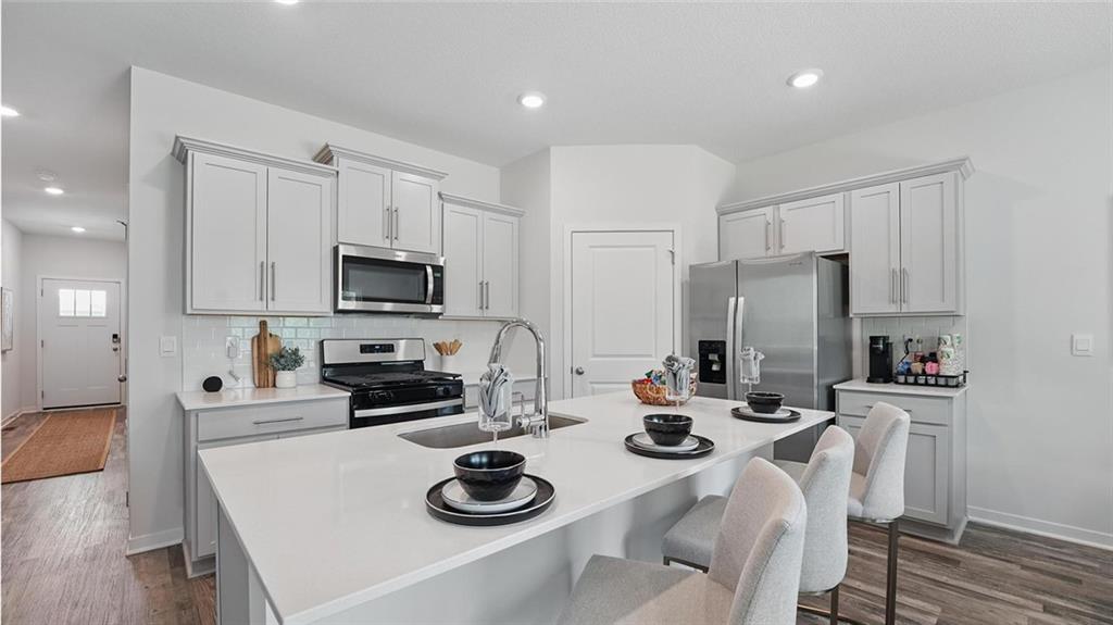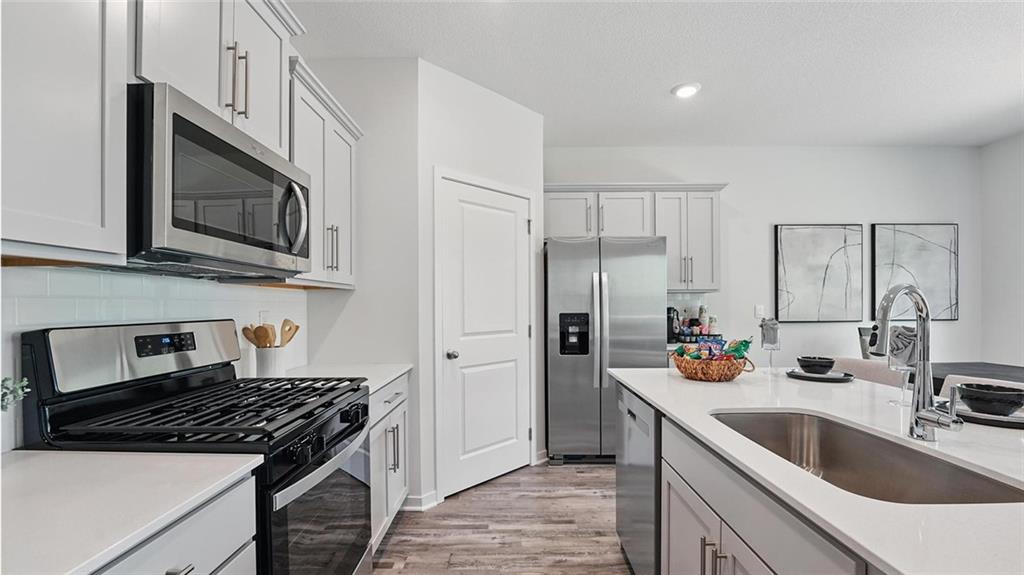 Welcome to Prairie Trace, where modern design meets timeless elegance in this exceptional home crafted by D.R. Horton, “America’s Builder.” This home stands out with James Hardie® siding and stone and shake shingle accents, providing both durability and timeless curb appeal. You'll be greeted with a three-rail, two-panel insulated front door that enhances both curb appeal and energy efficiency. Step inside to find a beautifully appointed interior with 9-foot ceilings that exude sophistication. The chef’s kitchen is the heart of the home, featuring 36-inch painted maple cabinets, quartz countertops, and state-of-the-art Whirlpool® stainless steel appliances. Bathrooms feature quartz-topped vanities and Moen® chrome faucets. The primary bath offers a 5-foot shower with a framed glass enclosure. This home is designed for the future with advanced Smart Home technology, including a Honeywell® Pro Z-Wave® Thermostat, Amazon Echo, and a connected home panel, allowing you to control and monitor your home from anywhere. Energy efficiency is prioritized with LED lighting throughout, a high-efficiency gas furnace, and insulated low E vinyl windows, ensuring comfort and savings year-round. Additional features such as luxury vinyl plank flooring, a spacious garage with opener(s), and detailed wiring solutions like dual data/TV lines in the main bedroom and family room, enhance both convenience and style. D.R. Horton’s commitment to quality is evident in every aspect of this home, offering you a place where luxury, technology, and comfort come together seamlessly. Don’t miss your chance to own this extraordinary home in Prairie Trace. Schedule your private tour today and experience the D.R. Horton difference!