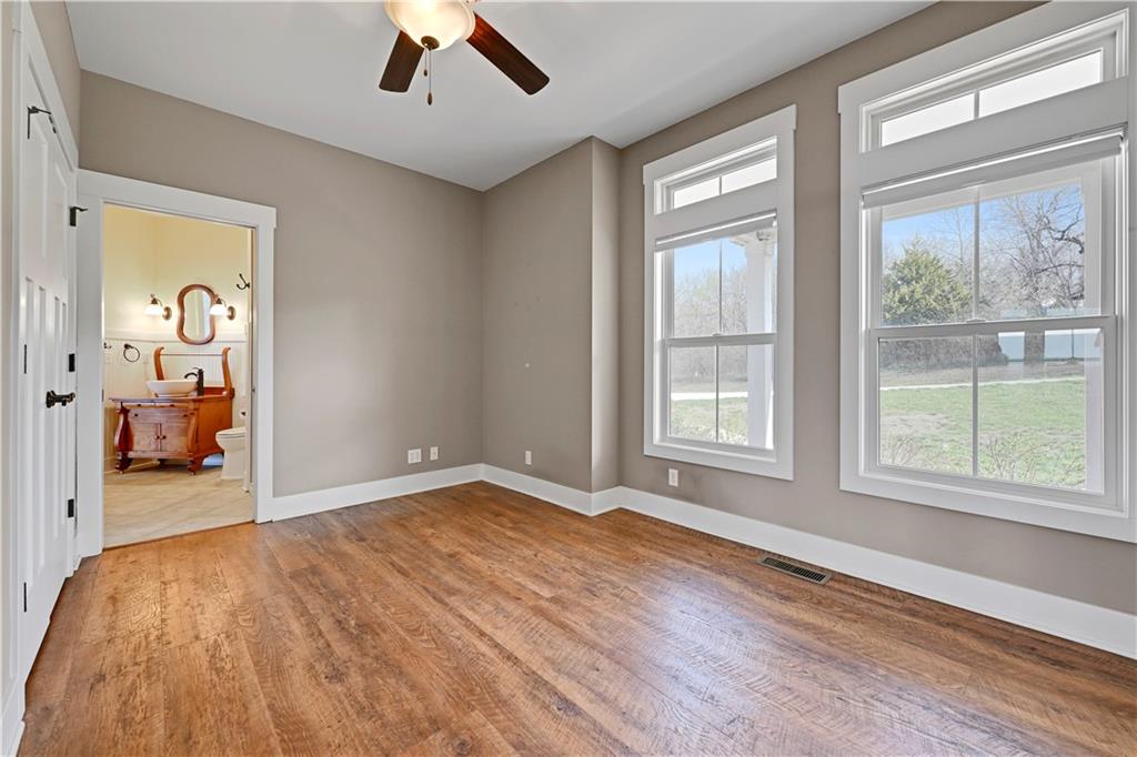 Just 30 minutes south of Overland Park, this peaceful retreat near Hillsdale Lake is your DREAM country property! Built in 2018, the reverse 1.5 story home STILL FEELS NEW with high quality finishes and lots of windows that capture the incredible views. Almost 8 private acres that adjoin the Army Corps of Engineer's land offer with a stocked shared pond on the north end of the property that is the perfect fishing spot. The nearby Hillsdale Lake trail system is over 50 acres and perfect for nature lovers or horse riding. A 54'x30' outbuilding with power and water has stalls for livestock or horses. Inside you'll find an open floorplan with 2 main level bedrooms and 2 more bedrooms in the walk-out lower level. Gorgeous kitchen with farmhouse sink and walk in pantry opens to the lovely hearth room living and dining rooms. Laundry room off the kitchen with extra storage. A dreamy screened in porch is the perfect spot to relax and take in the serene views of wildlife. The main level primary suite with a large walk in closet is a fabulous retreat. The lower level has a kitchenette and a large rec space and it’s own screened in porch. Take the cleared trail down to the lake that is shared by just a few other properties that touch it. Several fenced areas for riding or grazing. This property must be seen to be appreciated...don't miss it!